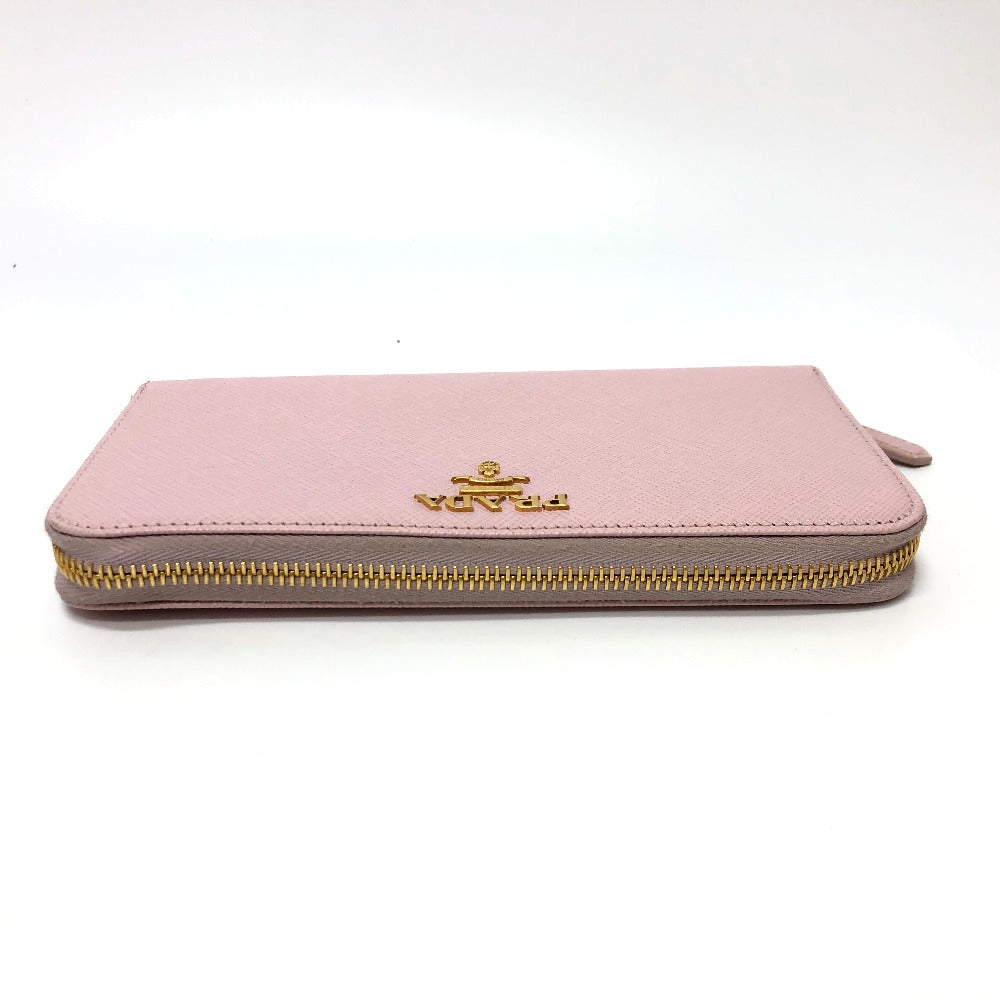 PRADA Long Wallet Purse 1ML506 saffiano leather pink logo Zippy wallet Women Used Authentic
