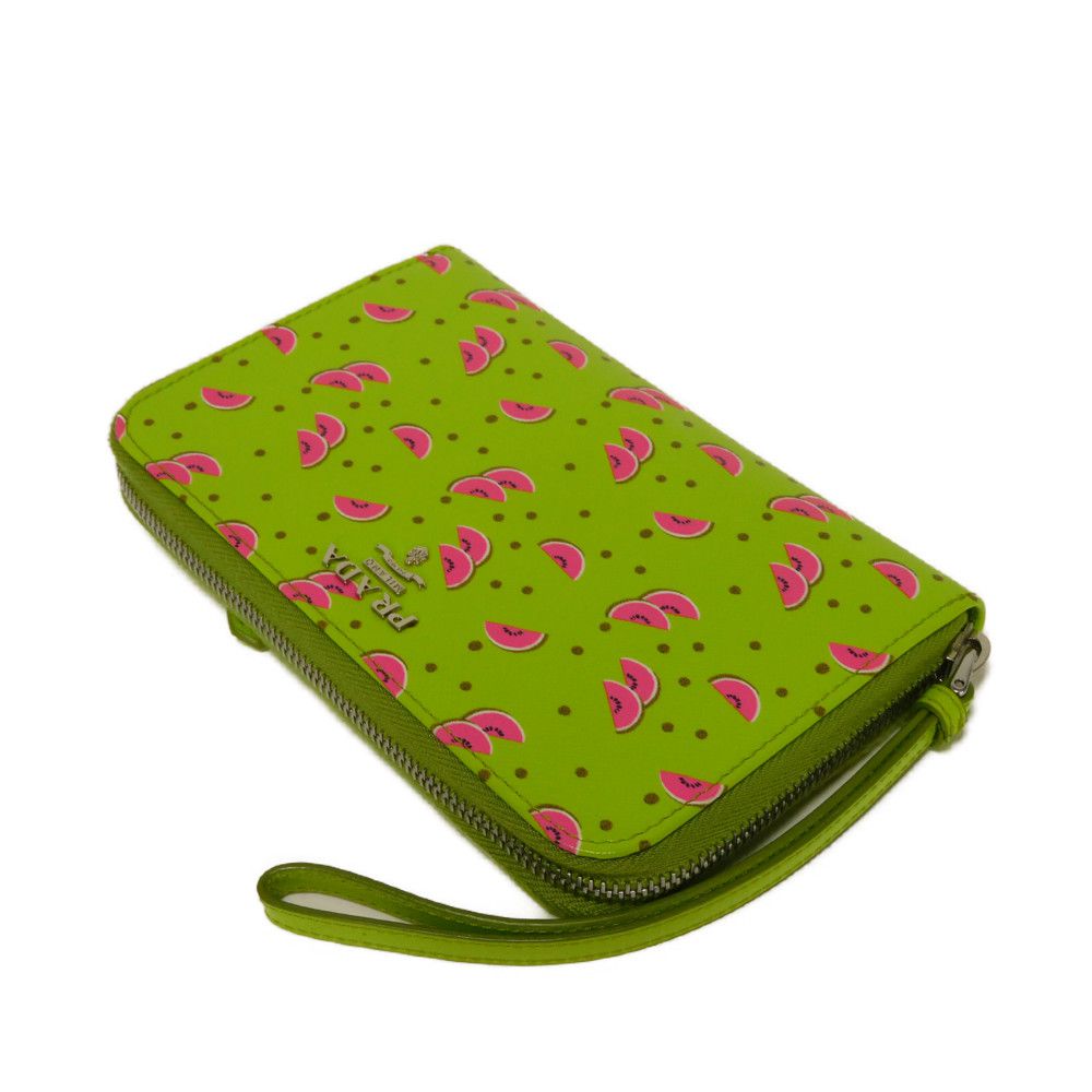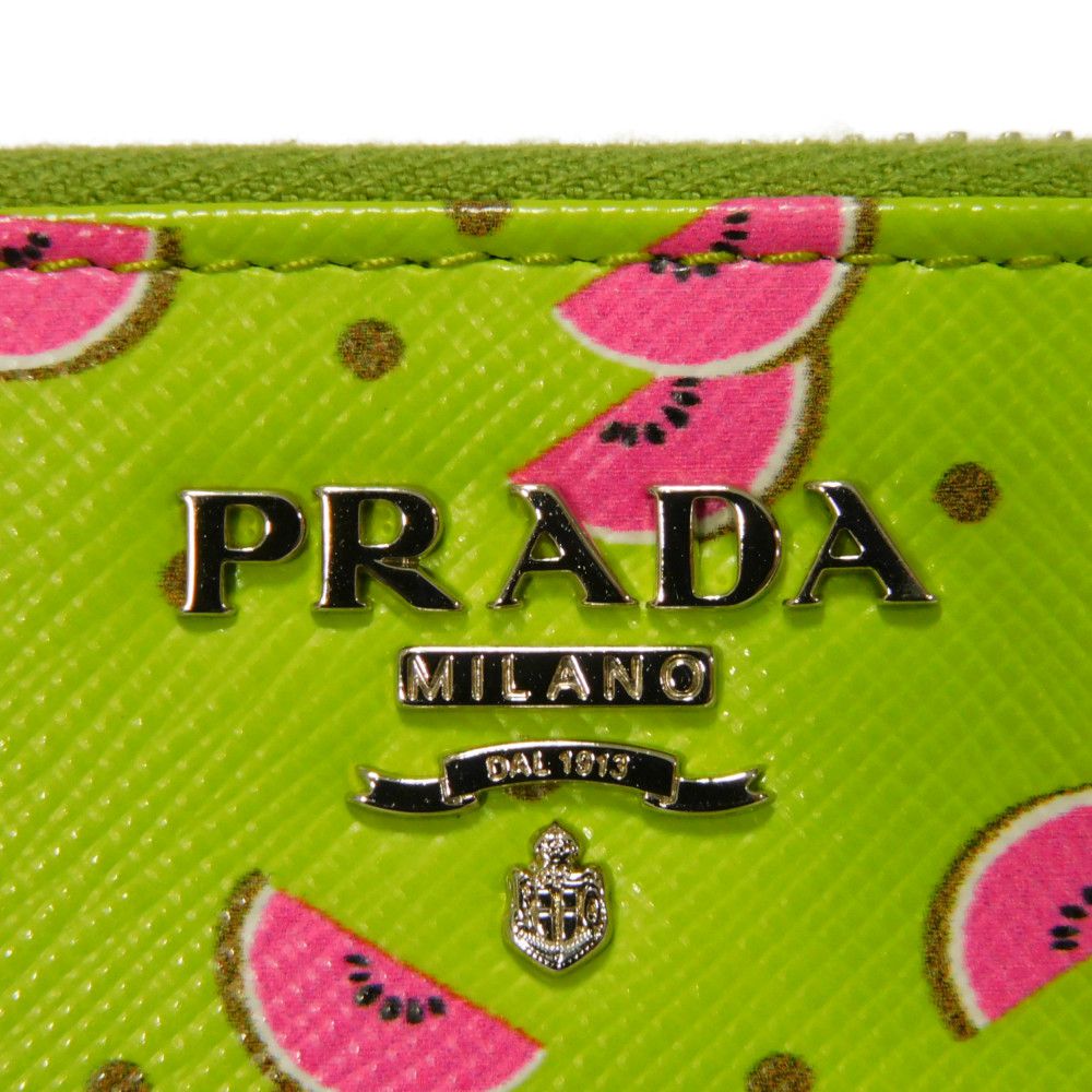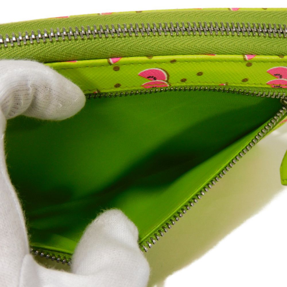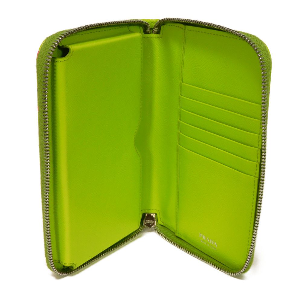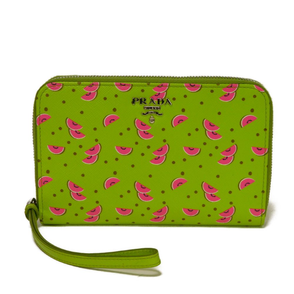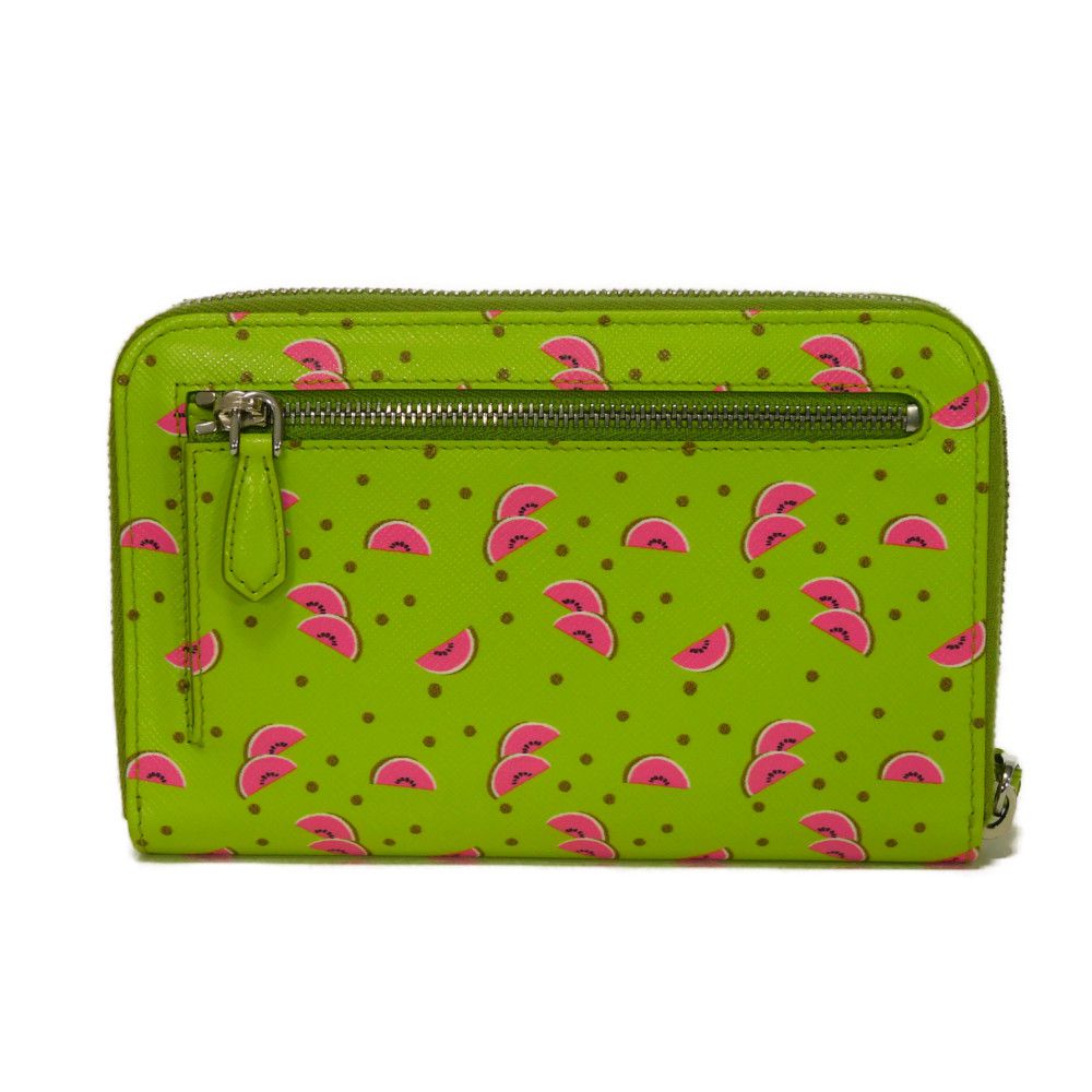 PRADA Long Wallet Purse 1ZH030 Safiano leather (stamped) Green / pink logo metal Saffiano Watermelon Smartphone Pouch