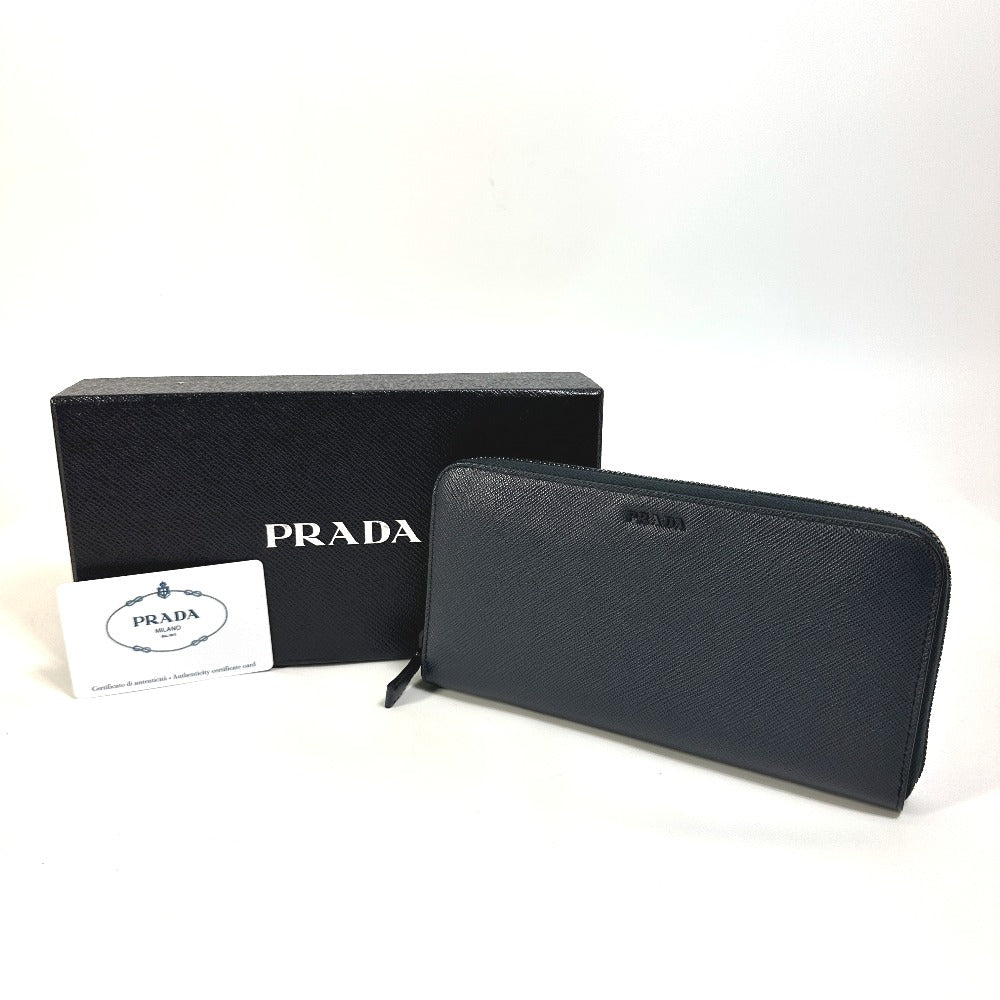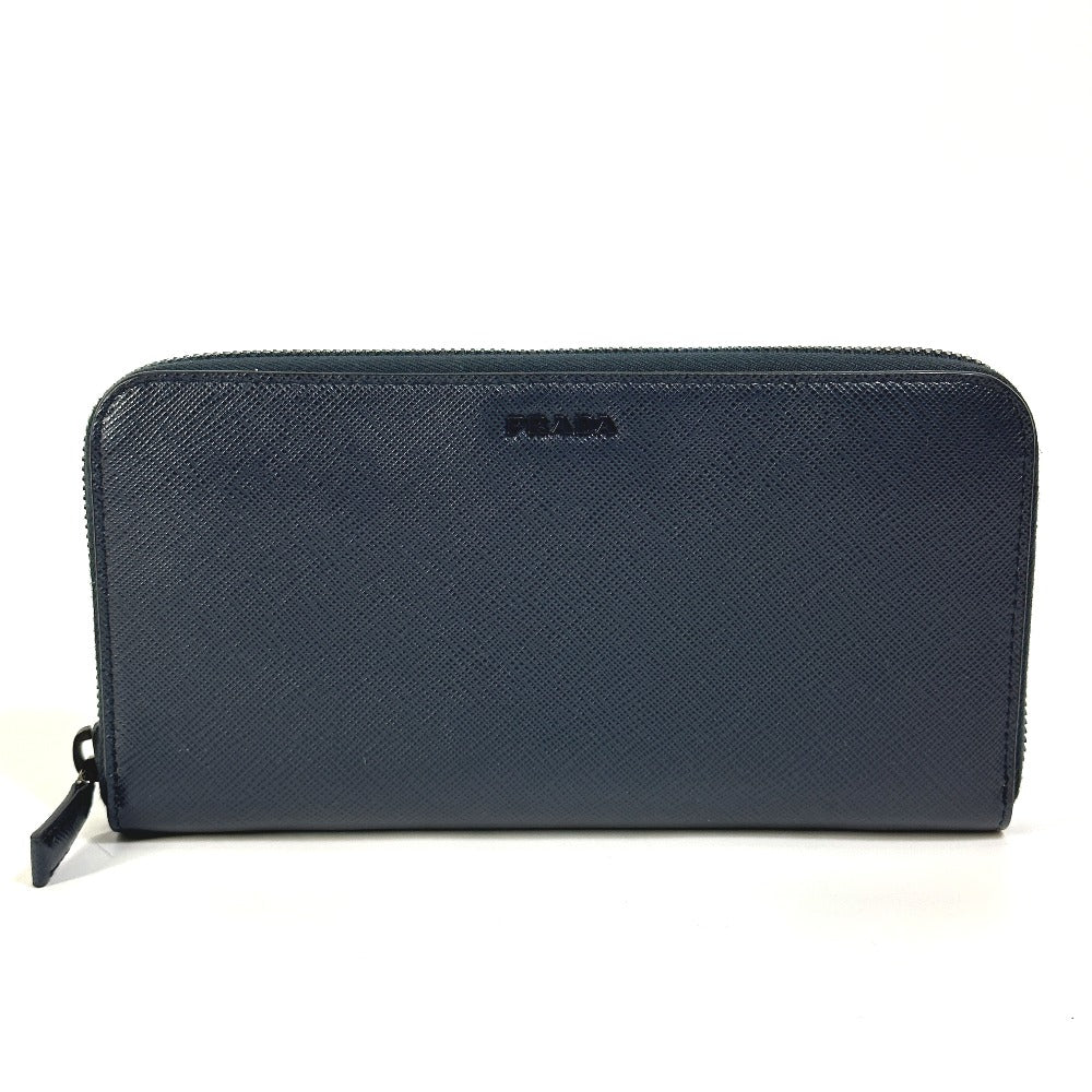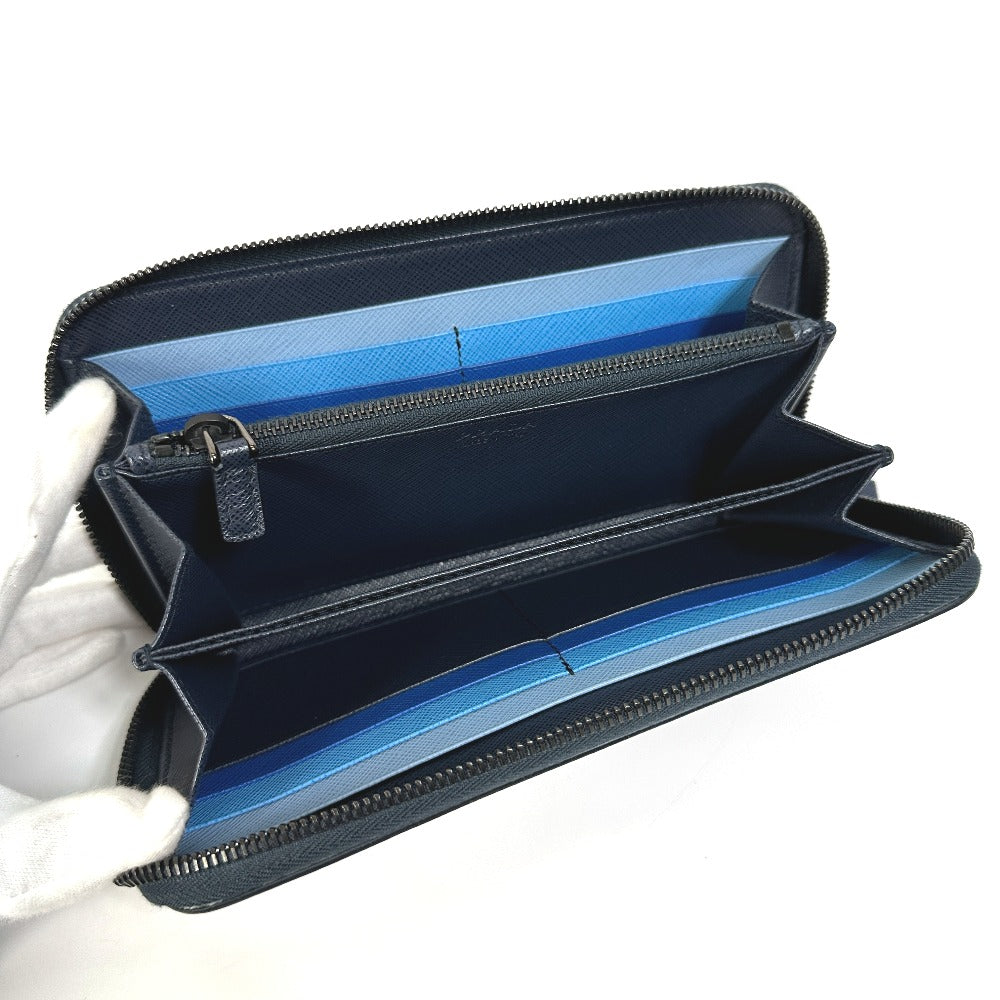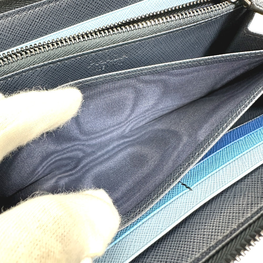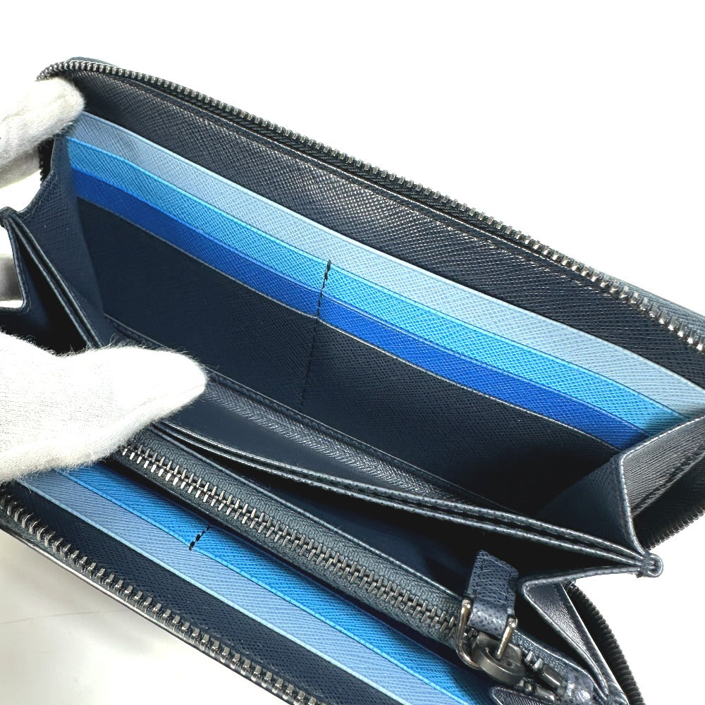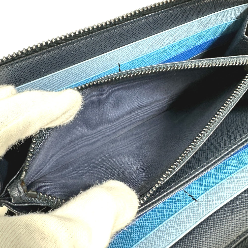 PRADA Long Wallet Purse 2ML317 saffiano leather Navy logo gradient Zip Around mens Used Authentic