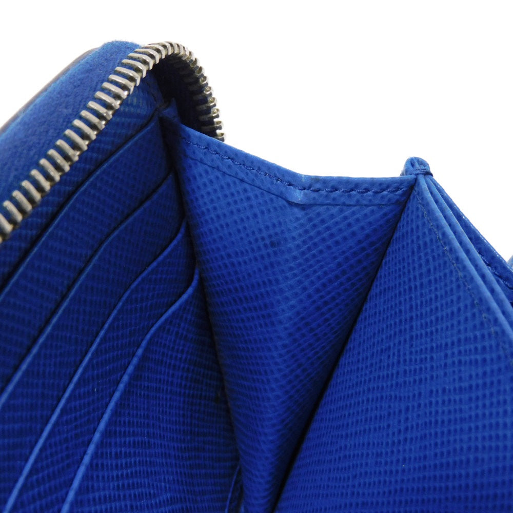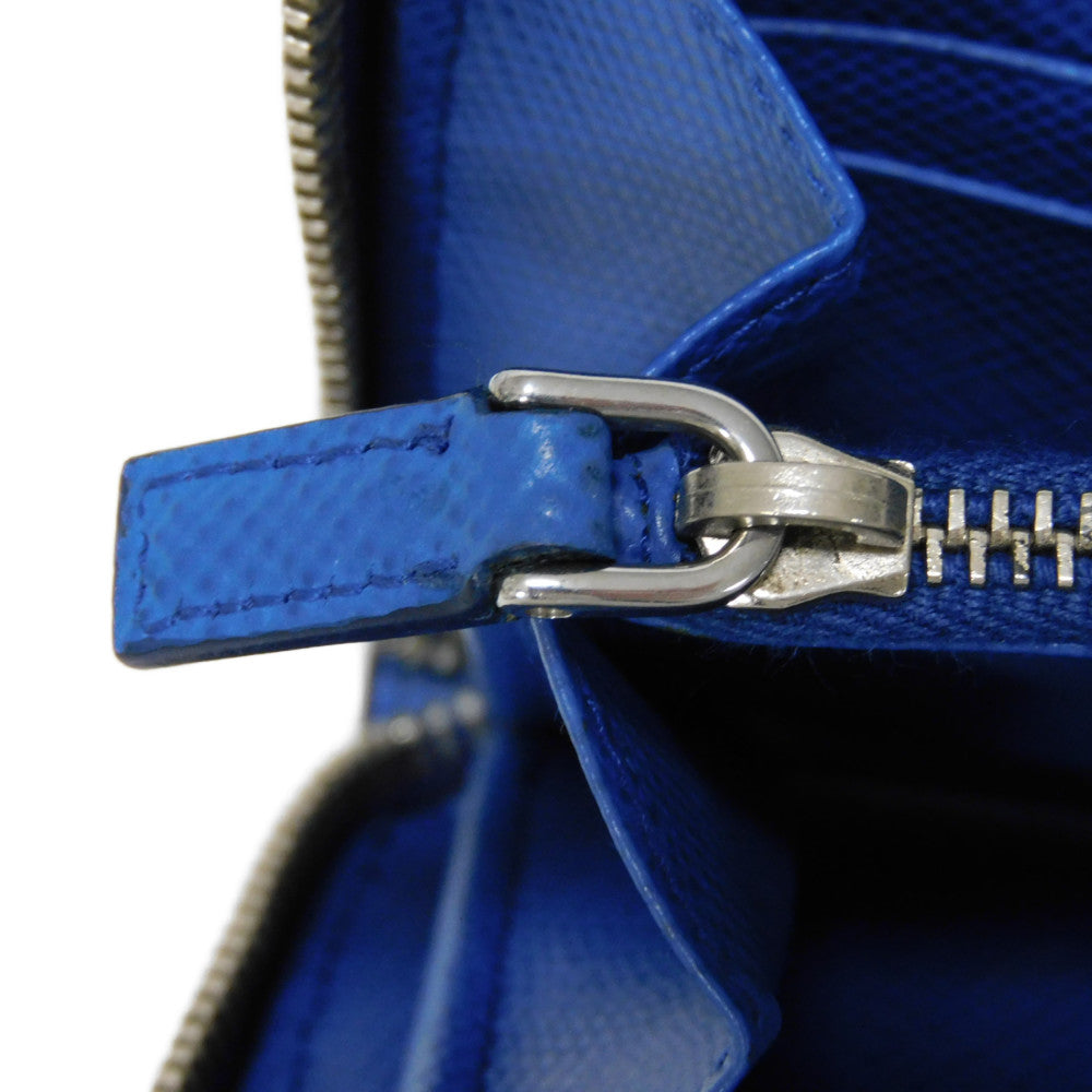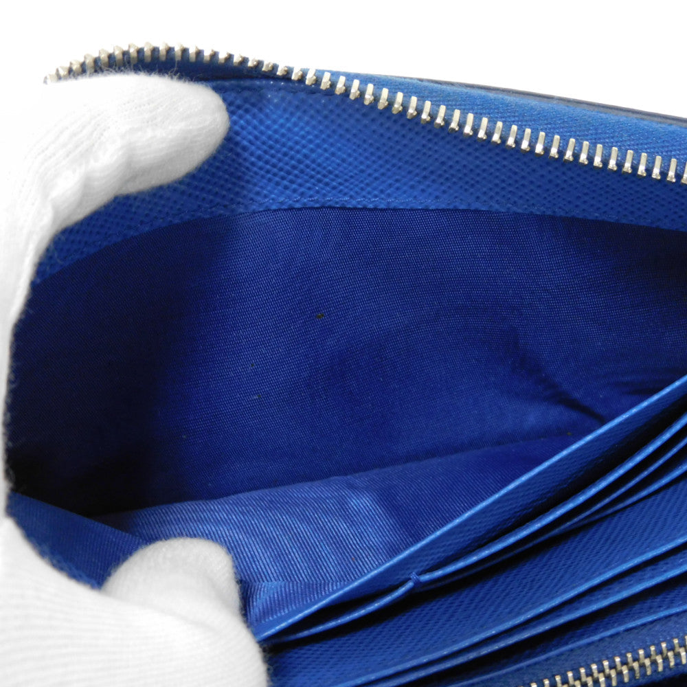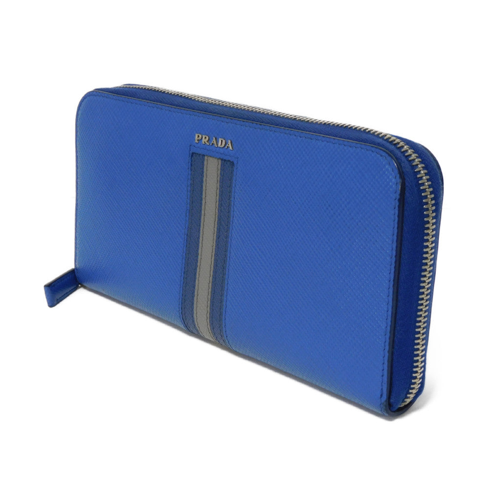 PRADA Long Wallet Purse 2ML317 Safiano leather (stamped) blue Gray Zip Around logo metal Saffiano striped round zip wallet unisex(Unisex) Used Authentic