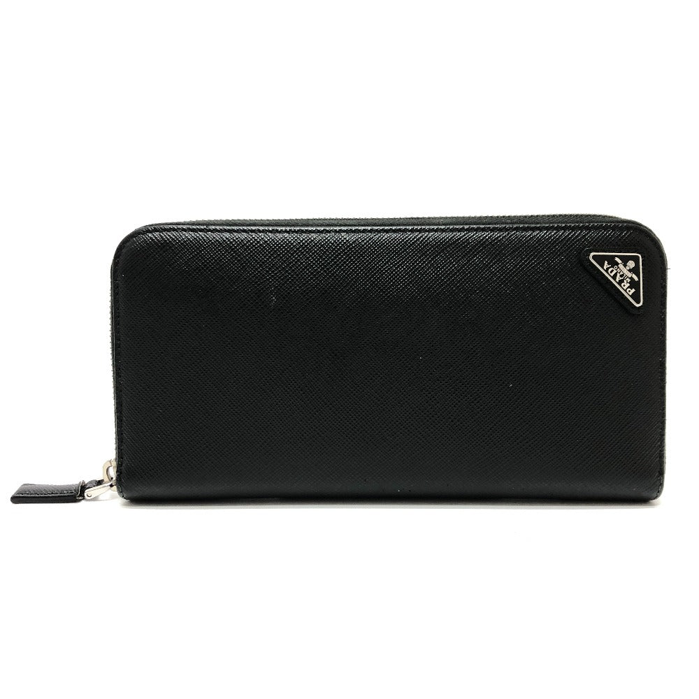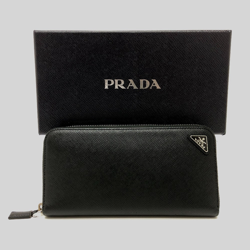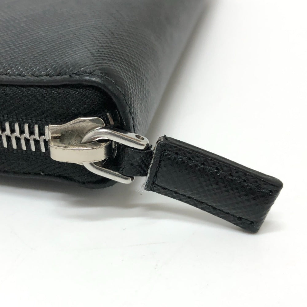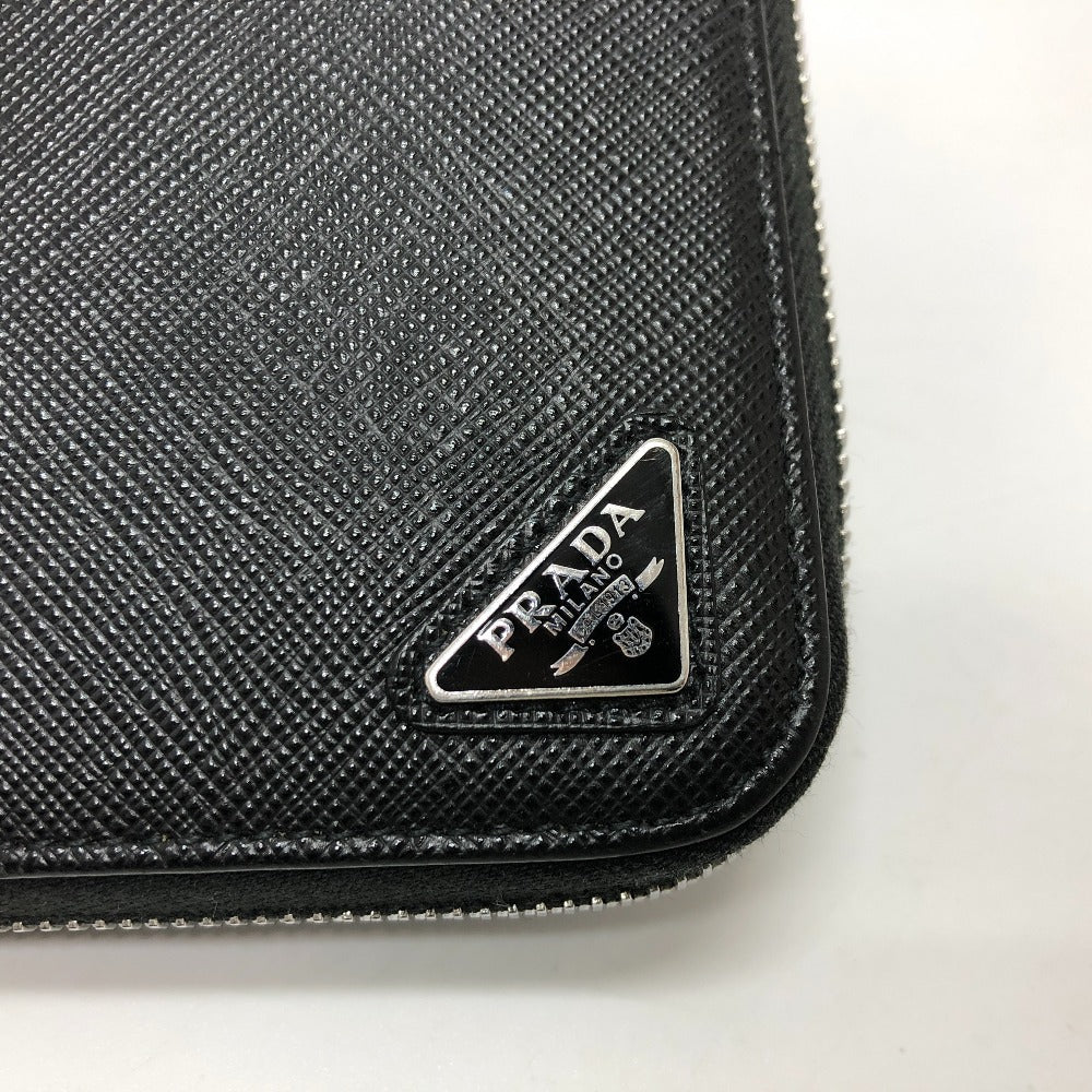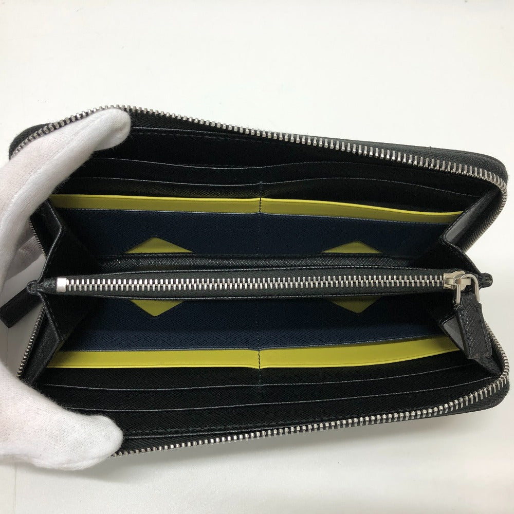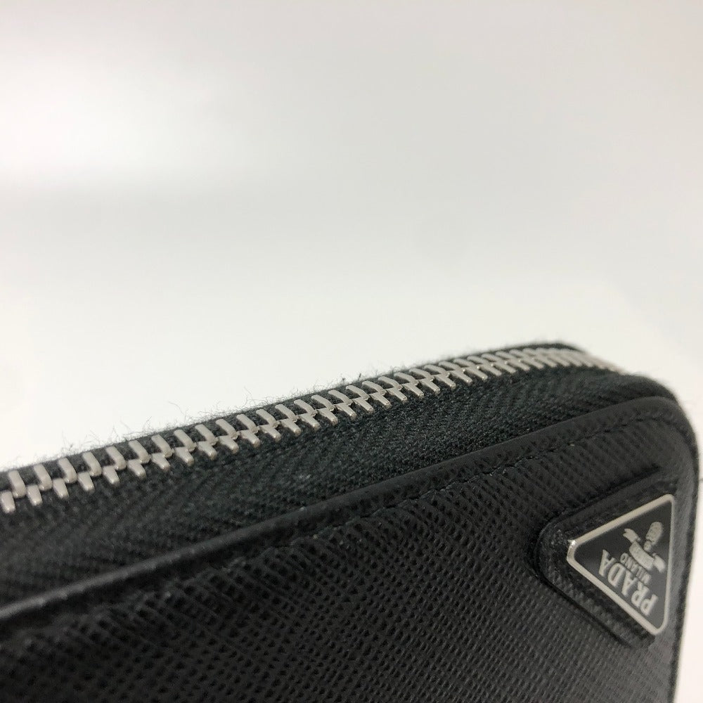 PRADA Long Wallet Purse 2ML506 saffiano leather black Triangle logo Zip Around Women Used Authentic