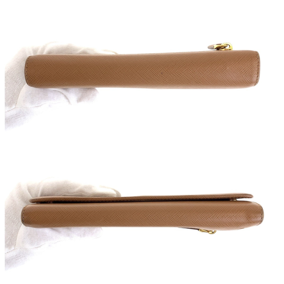 PRADA Long Wallet Purse leather Brown Camel Gold Metal Long Wallet Purse Long wallet unisex Safiano Women Used Authentic
