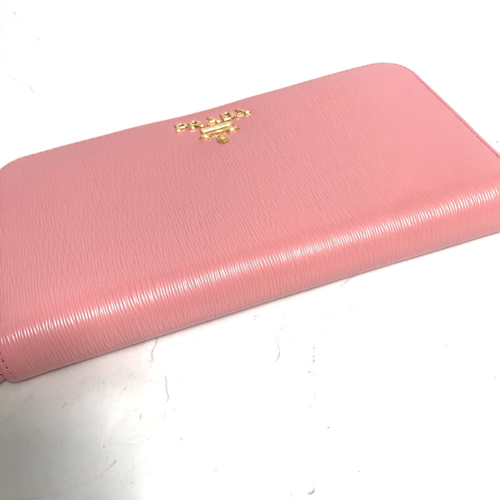 PRADA Long Wallet Purse leather pink logo Long wallet Women Used Authentic