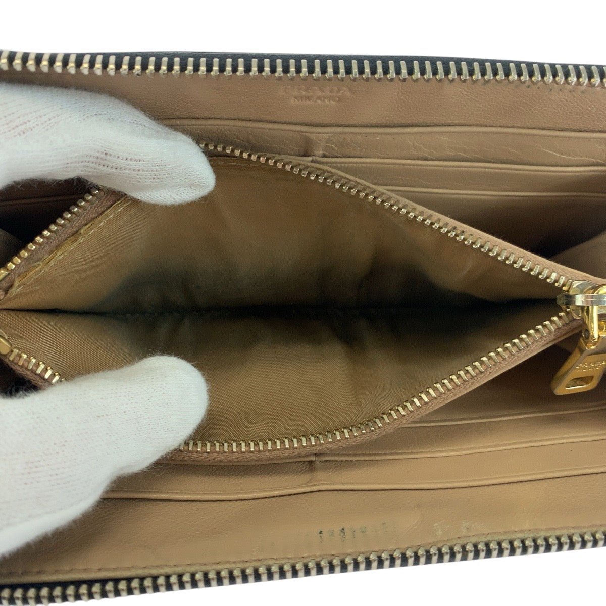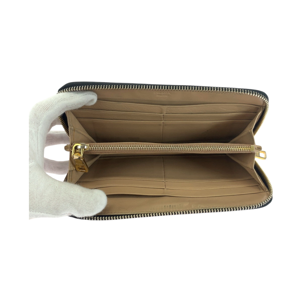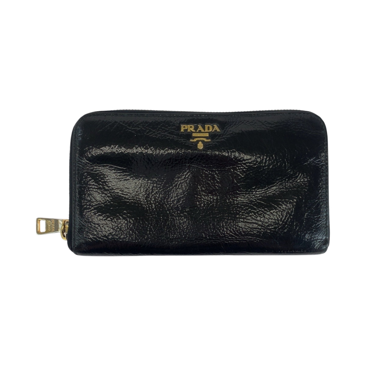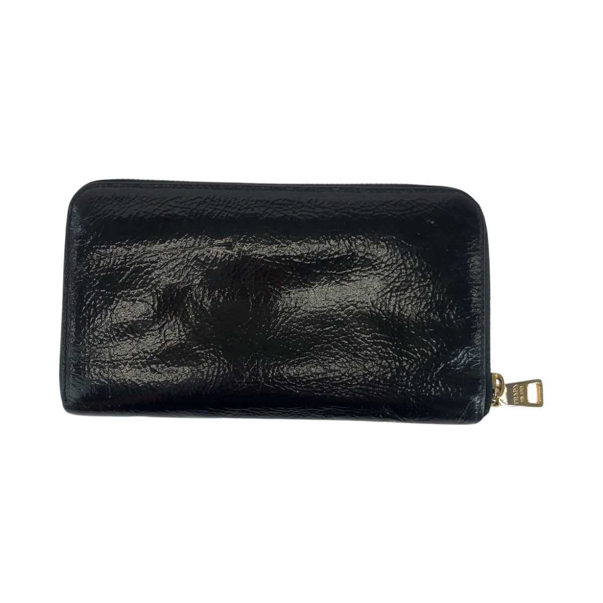 PRADA Long Wallet Purse Patent leather Black GoldMetal Long wallet Zip Around logo mens Used Authentic