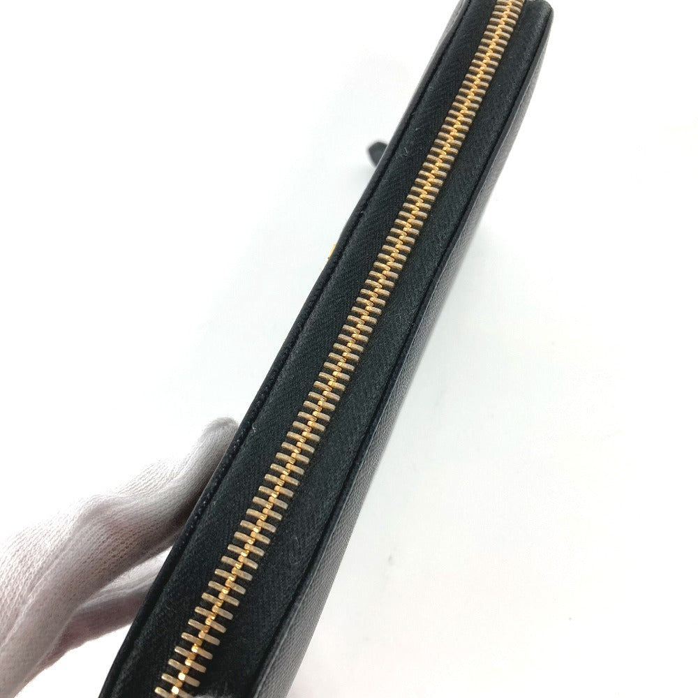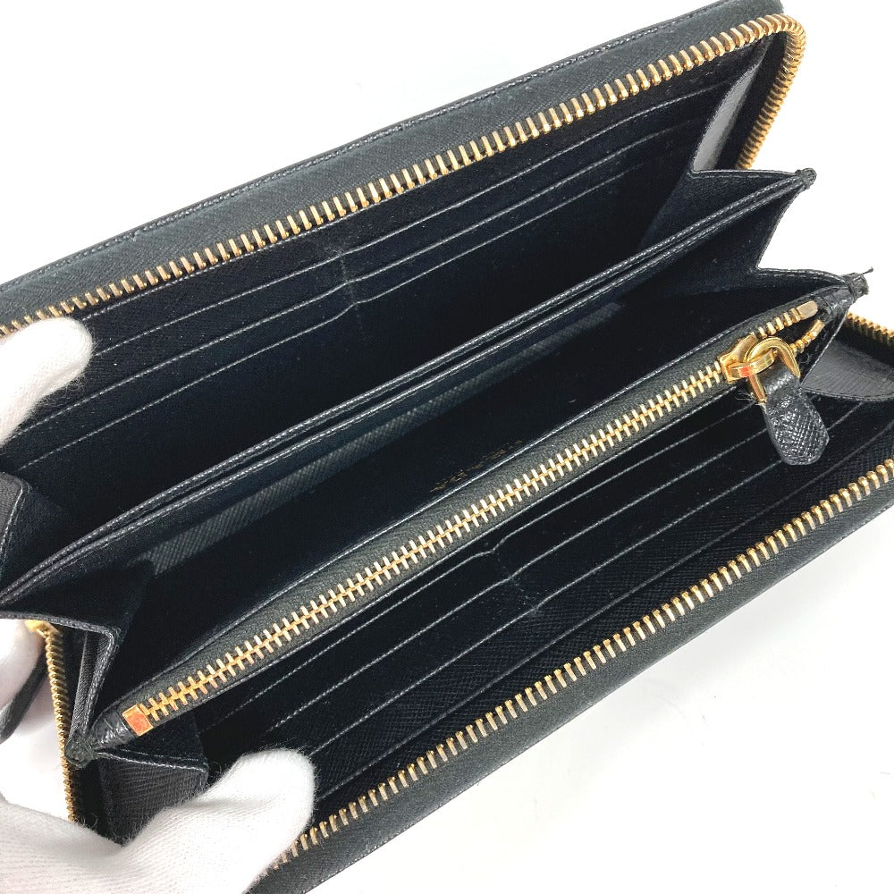 PRADA Long Wallet Purse Safiano leather black logo Zip Around Women Used Authentic