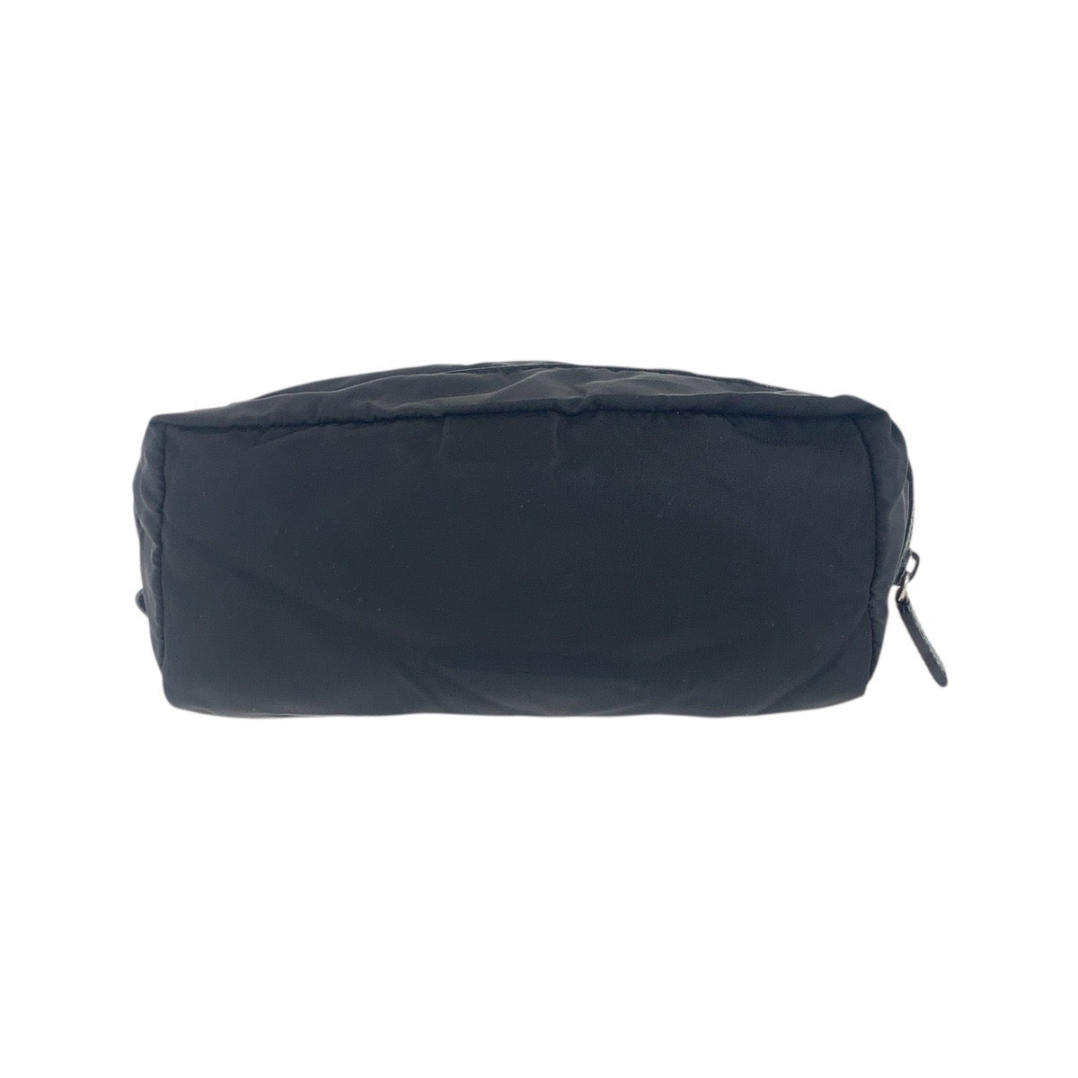PRADA Pouch Nylon, Leather Black SilverMetal Pouch Cosmetics Pouch Test Triangle With logo Women Used Authentic