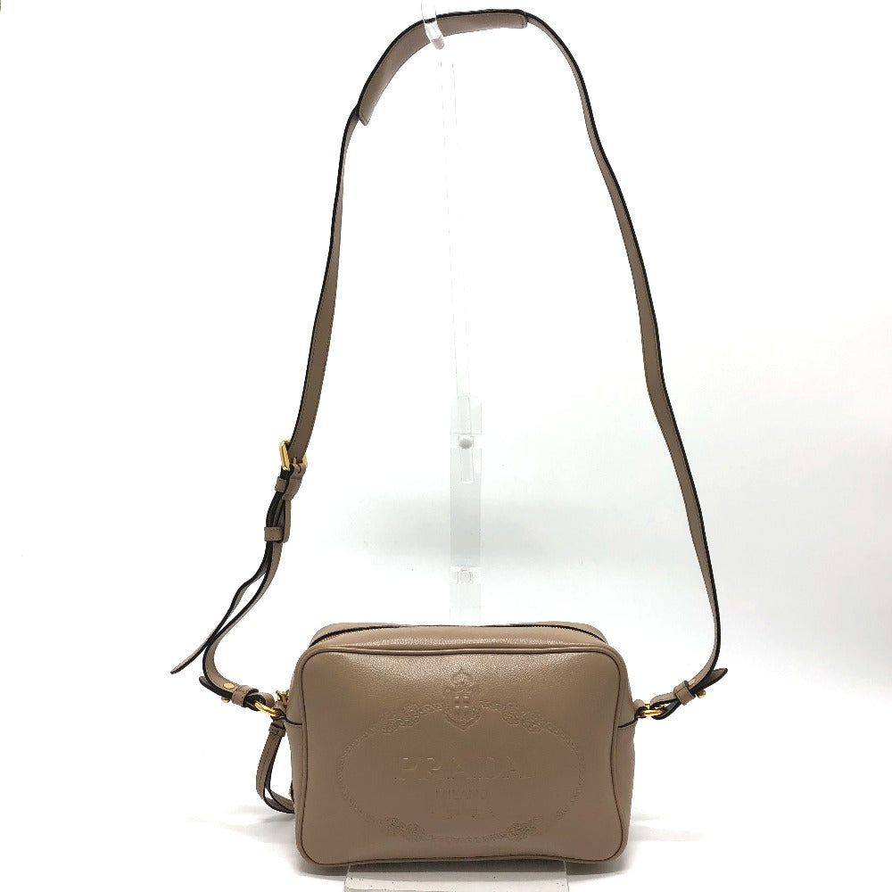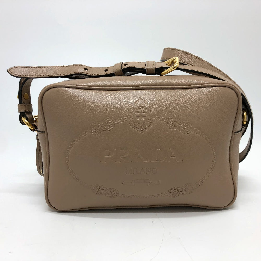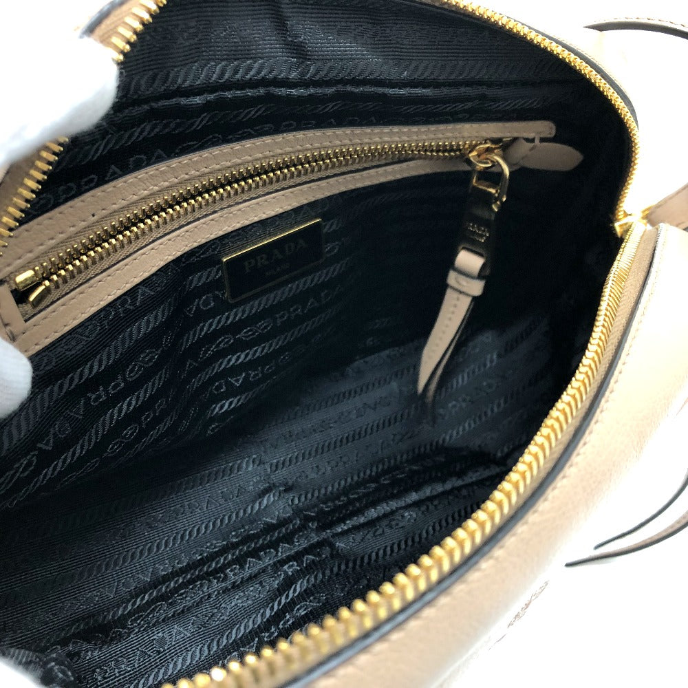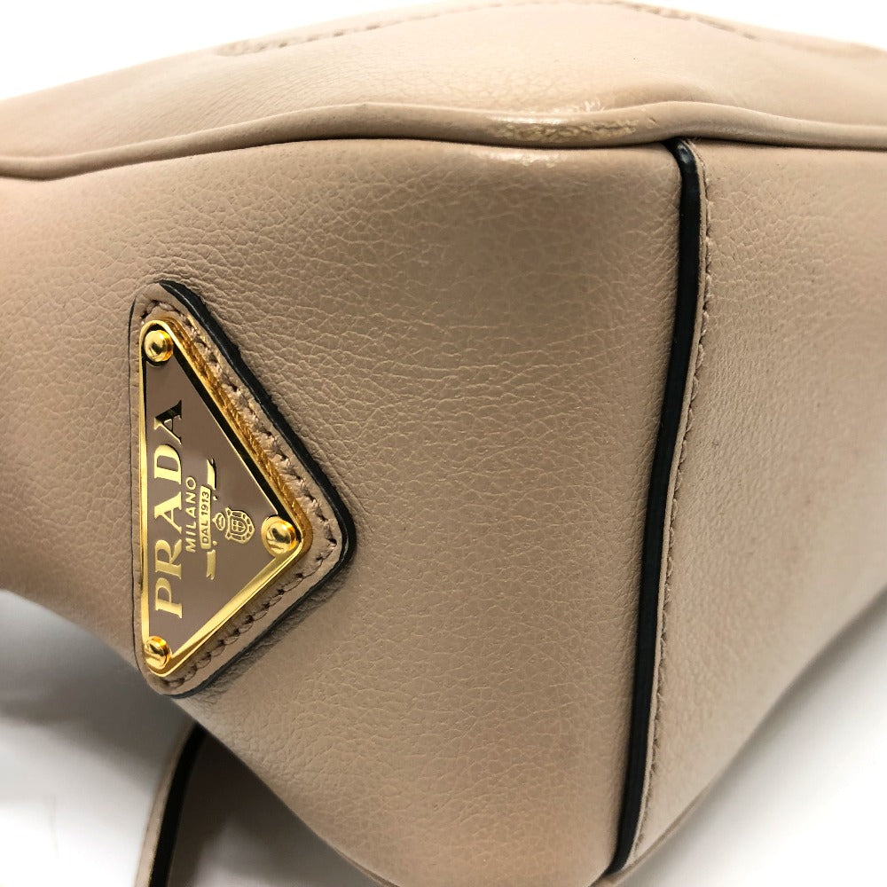 PRADA Shoulder Bag 1BH089 leather beige logo GLACE CALF CAMMEO Women Used Authentic