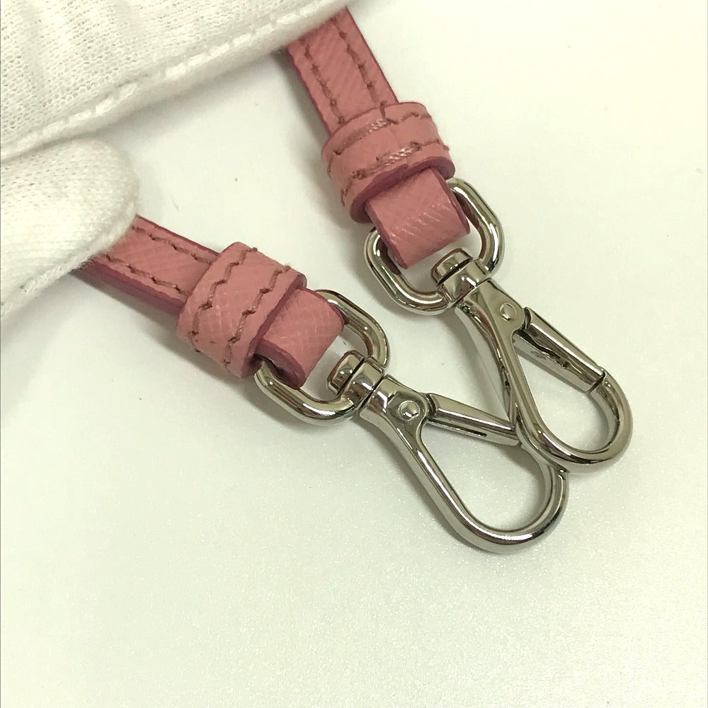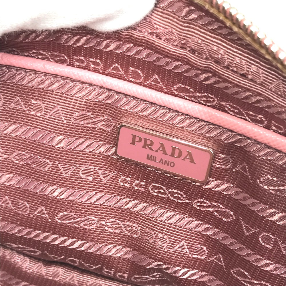 PRADA Shoulder Bag 1NF674 Safiano leather pink logo Shoulder pouch Women Used Authentic