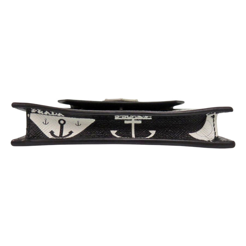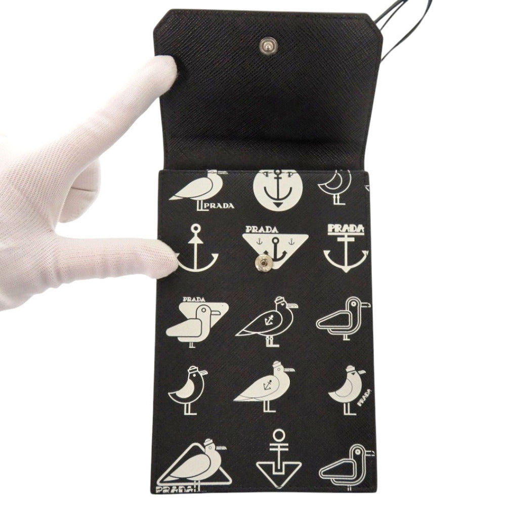 PRADA Shoulder Bag 2ZH068 Safiano leather black Smartphone Shoulder Marine Pattern Seagull iPhone case Smartphone case Women Used Authentic