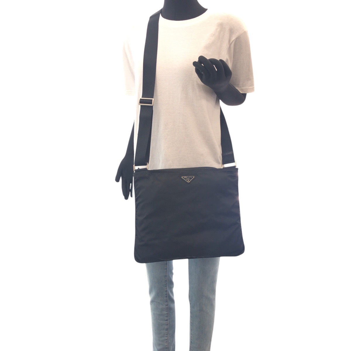 PRADA Shoulder Bag 42 Nylon Black SilverMetal Crossbody Shoulder Bag Unisex Test Triangle With logo Women(Unisex) Used Authentic