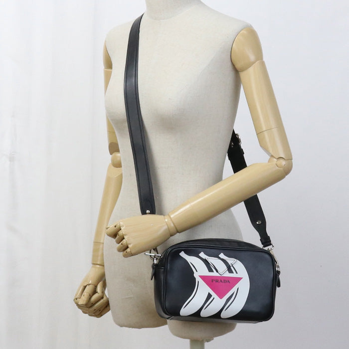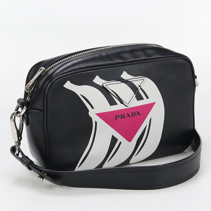 PRADA Shoulder Bag Banana Design Diagonal leather black Women |