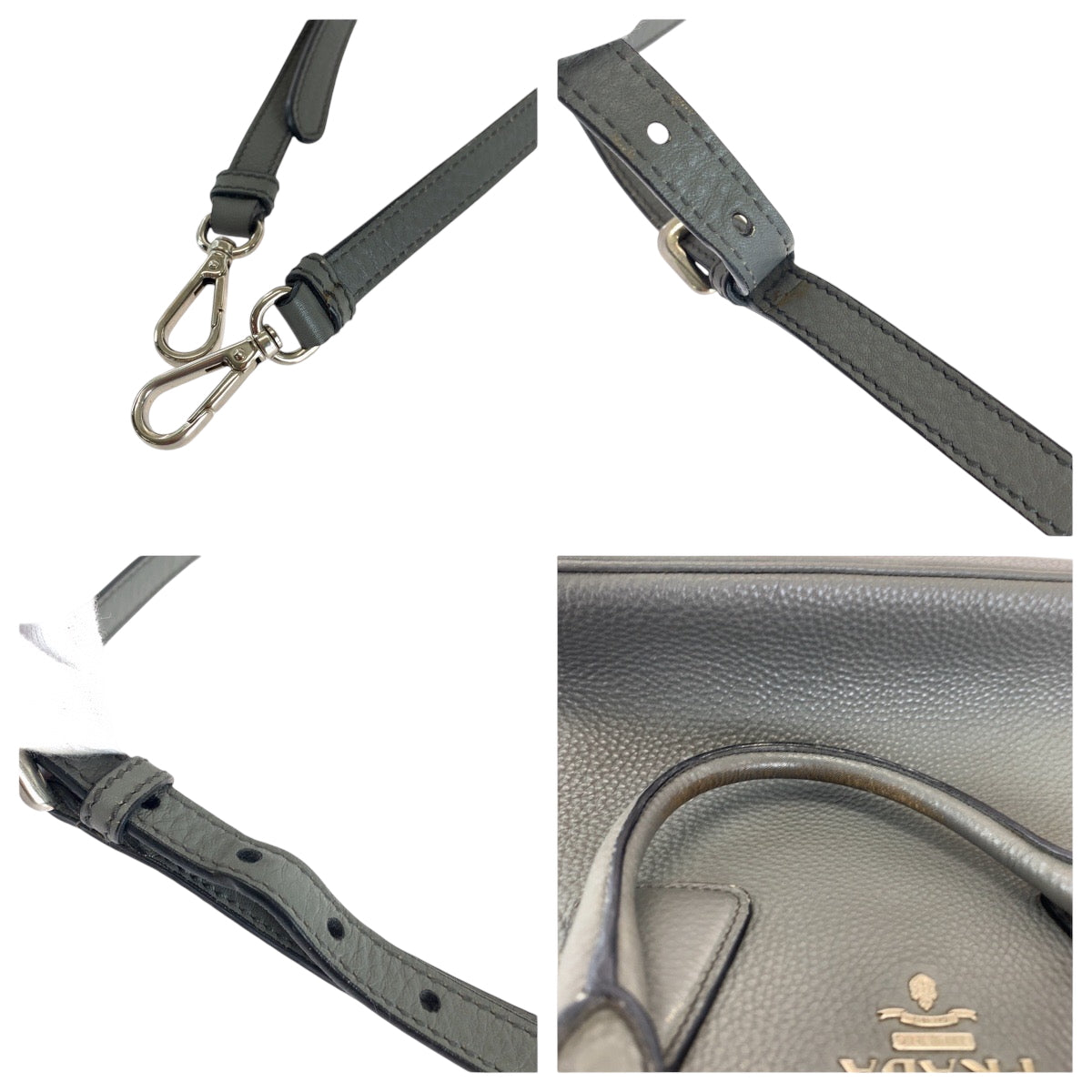 PRADA Shoulder Bag BN2579 leather Grey SilverMetal Shoulder Bag Tote Bag Handbag 2way Vitterodino logo Women Used Authentic