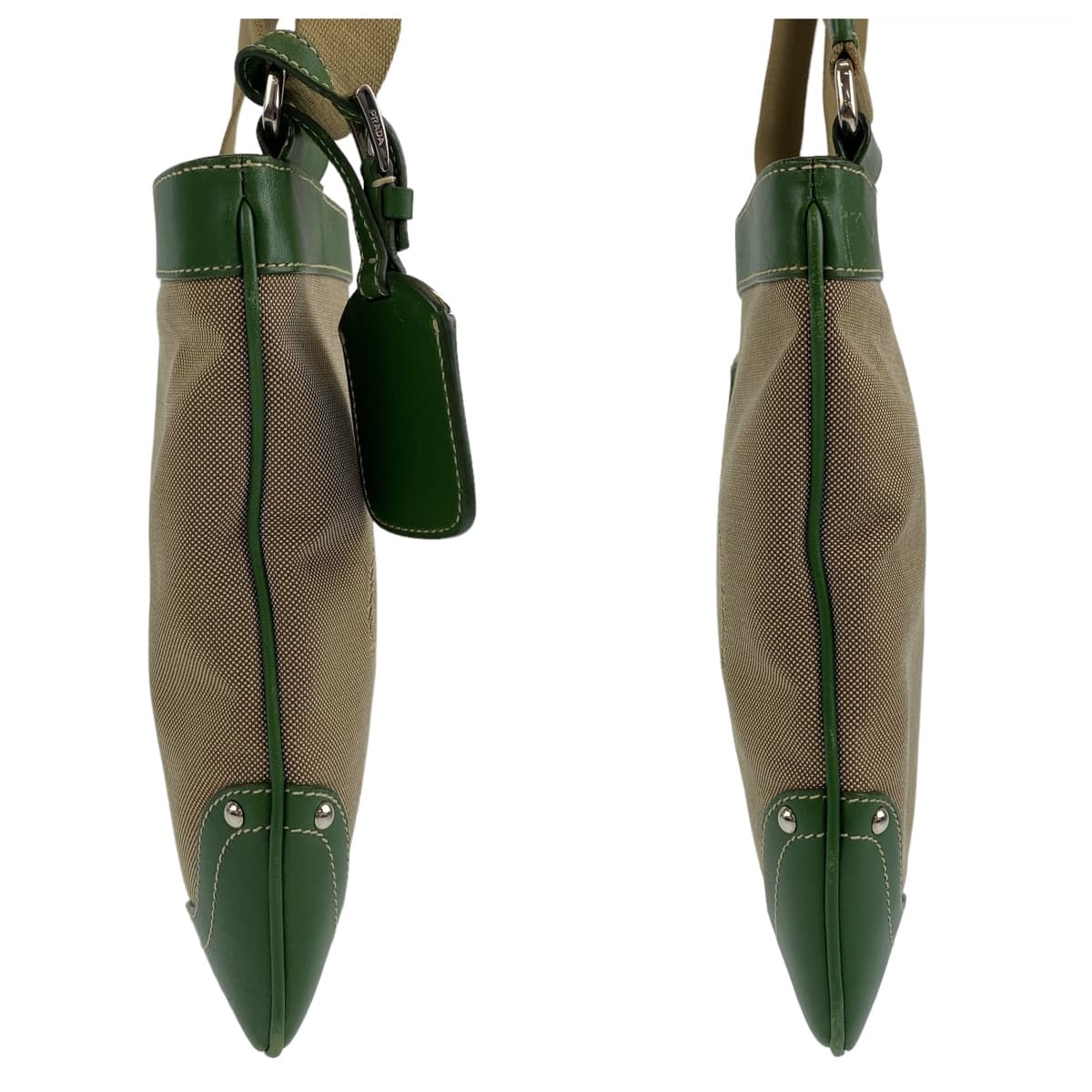 PRADA Shoulder Bag Canvas, Leather Beige Green SilverMetal Shoulder Bag Messenger bag Logo jacquard mens Used Authentic