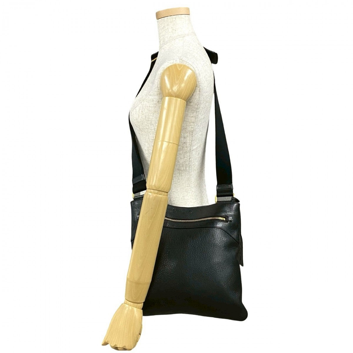 PRADA Shoulder Bag leather black Logo embossing Women Used Authentic
