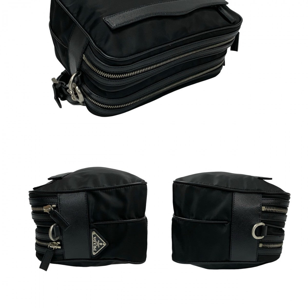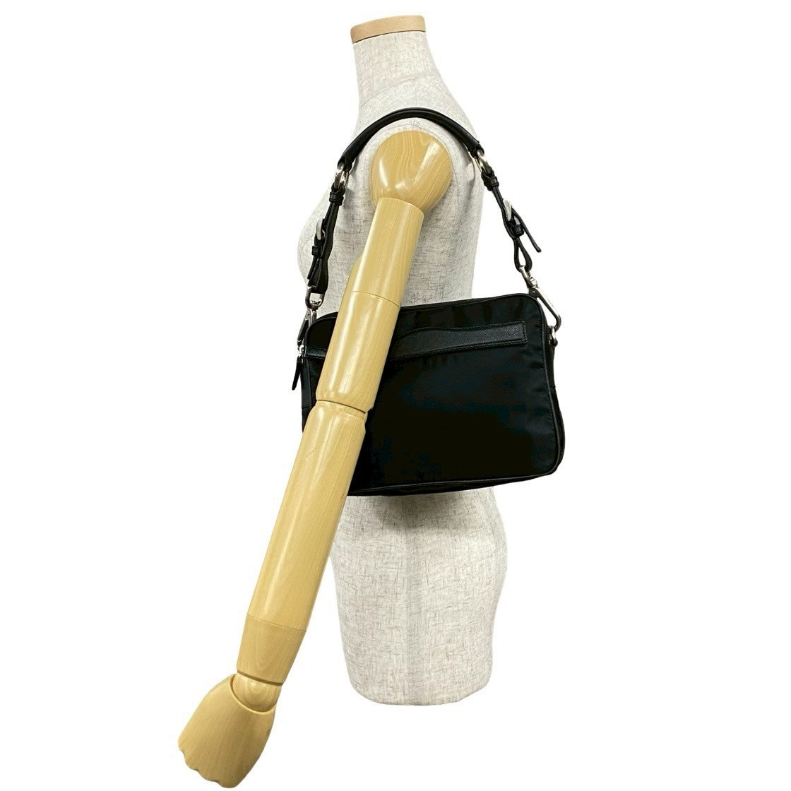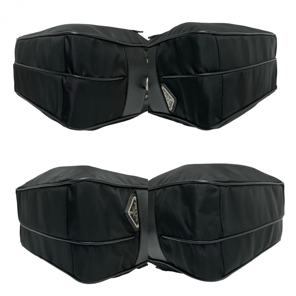 PRADA Shoulder Bag Leather, Nylon black Triangle Logo Metal Women Used Authentic