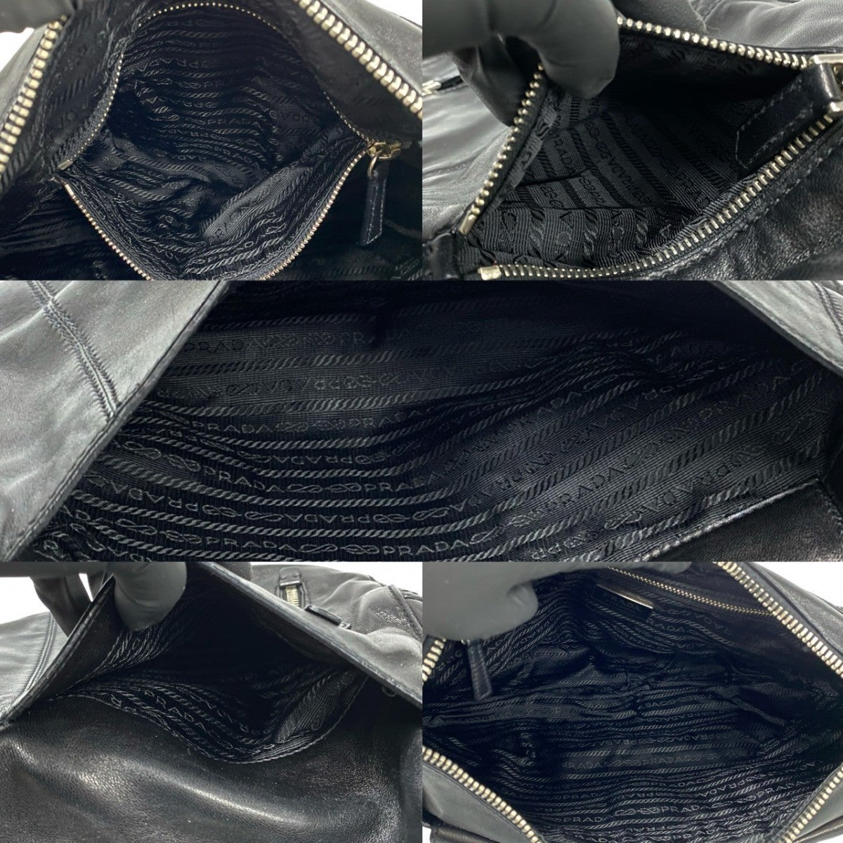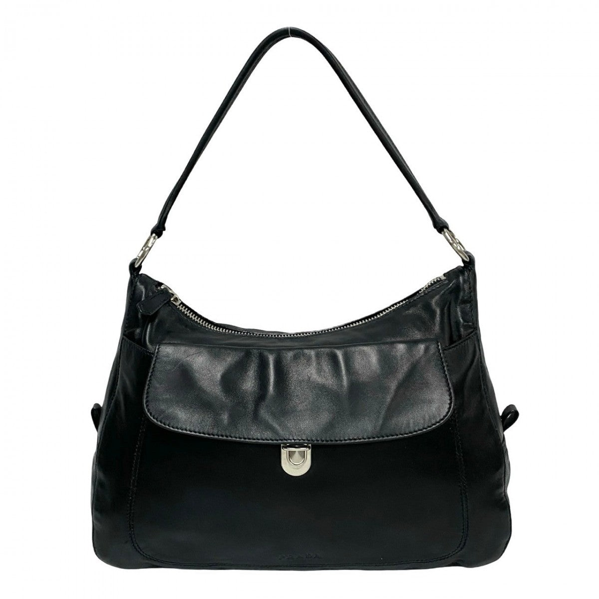 PRADA Shoulder Bag leather black Logo embossing Women Used Authentic