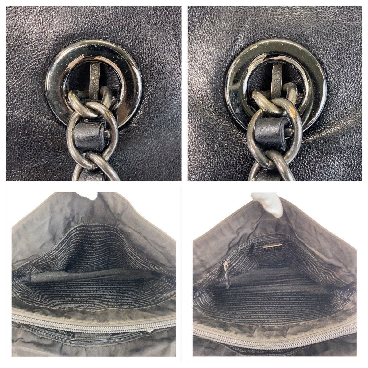 PRADA Shoulder Bag leather black Plastic Chain Shoulder Bag Tote Bag Women Used Authentic