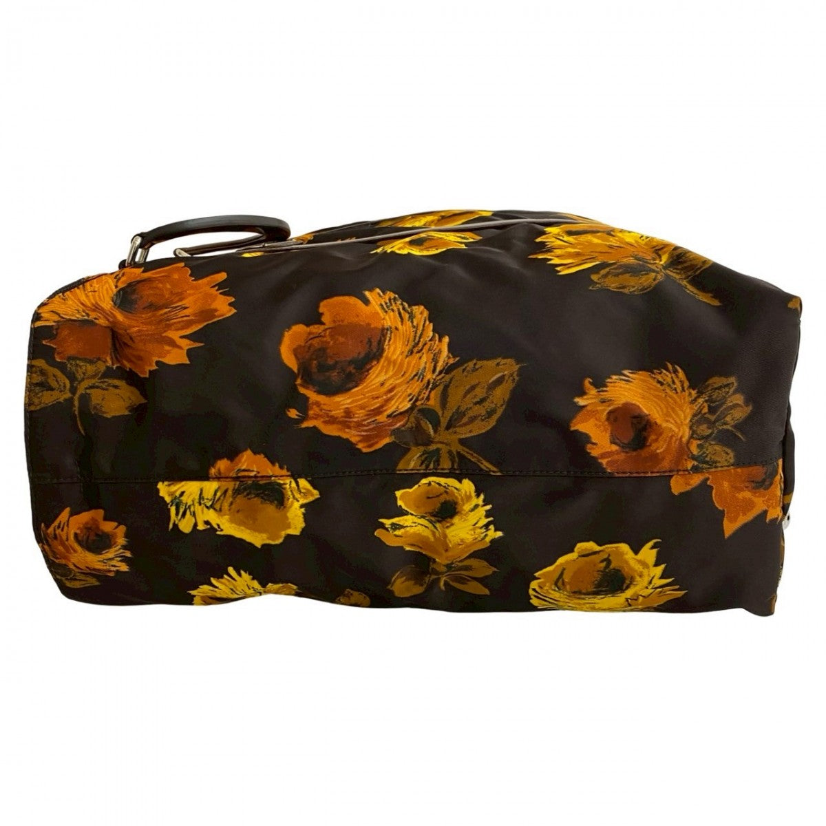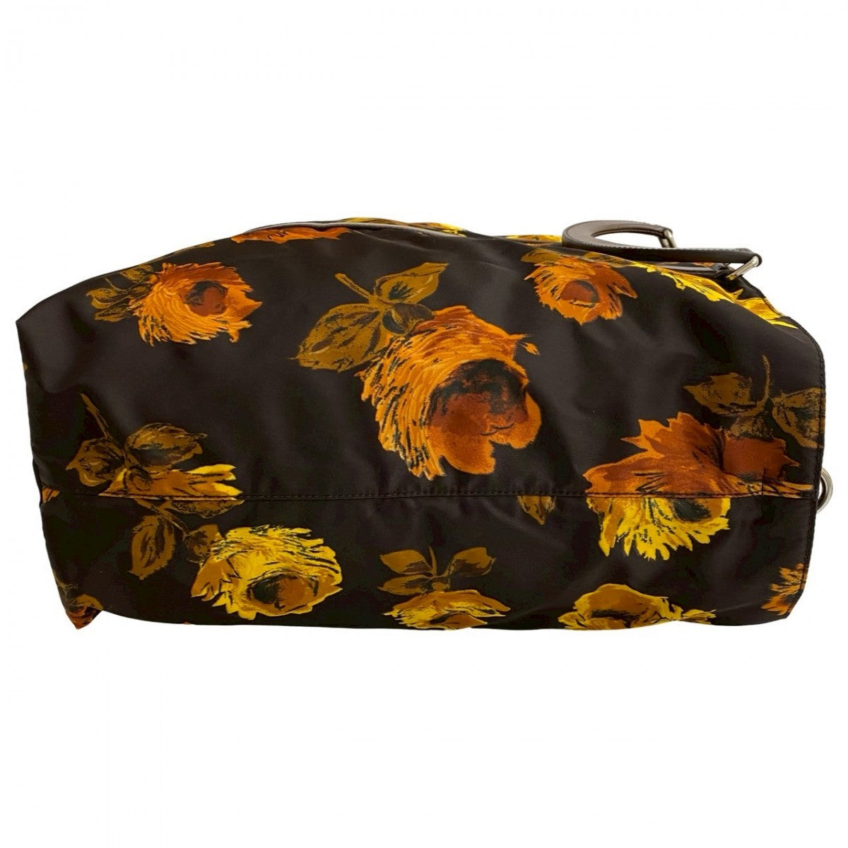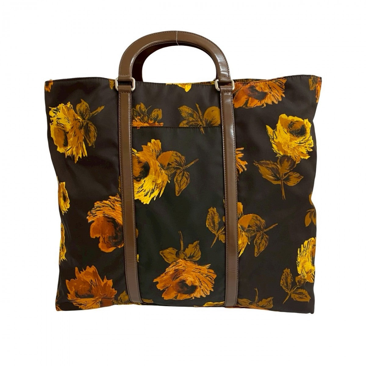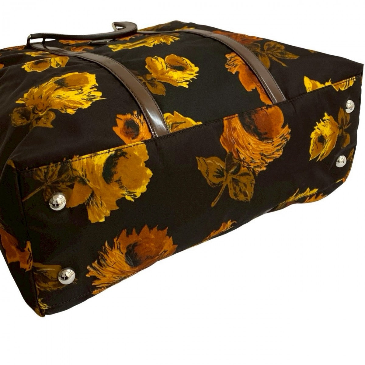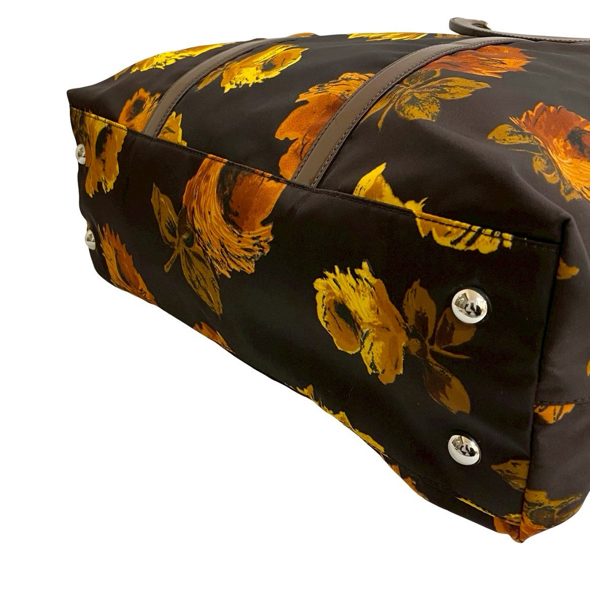 PRADA Shoulder Bag Leather, Nylon Brown floral triangle logo Women Used Authentic