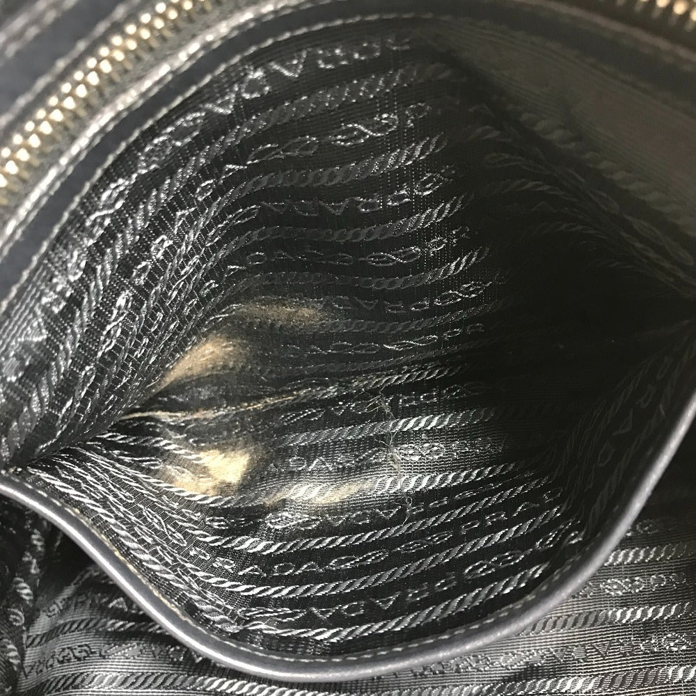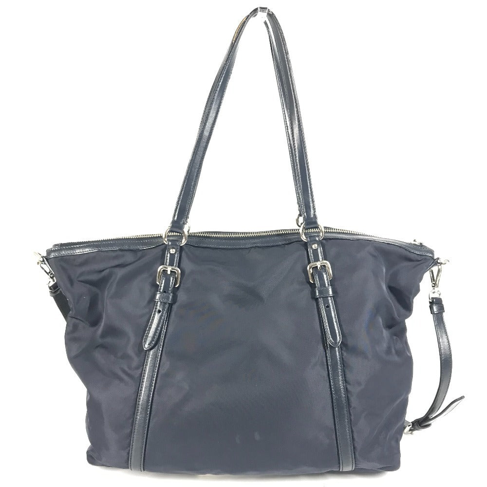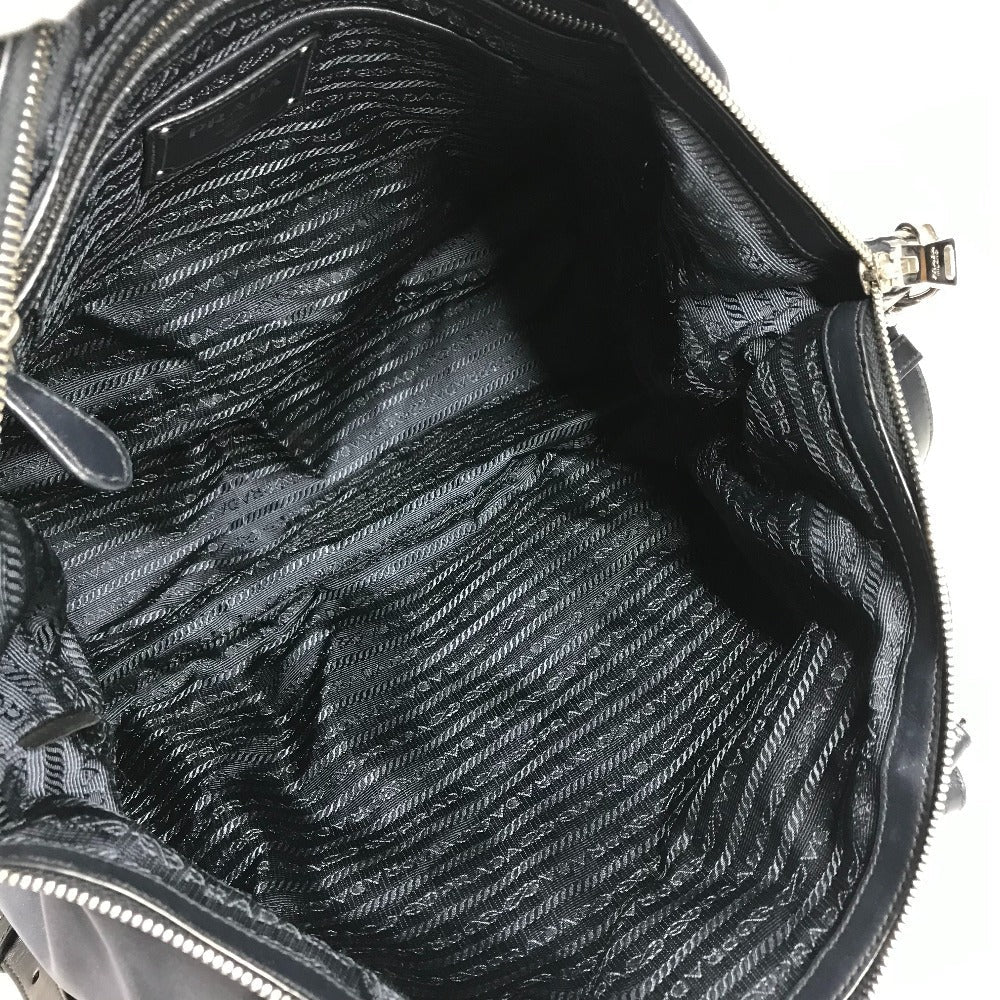 PRADA Shoulder Bag Leather / nylon Navy logo