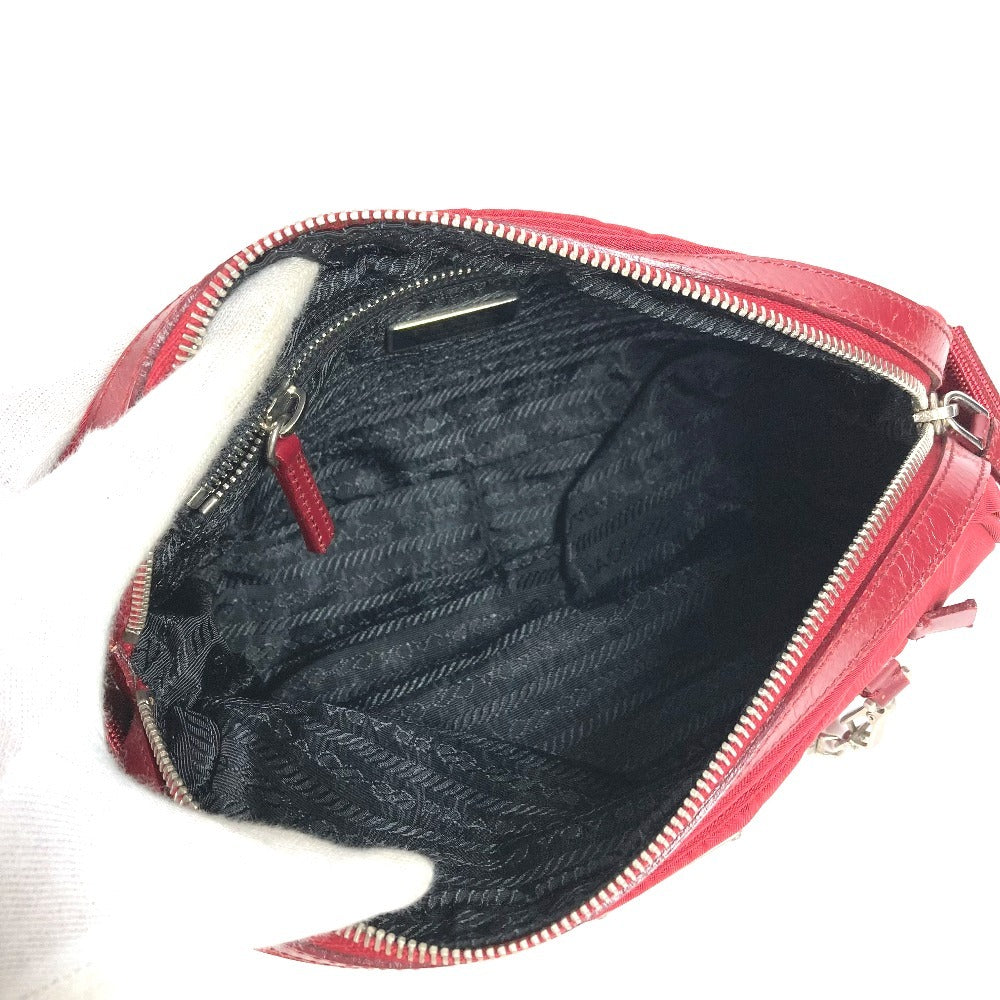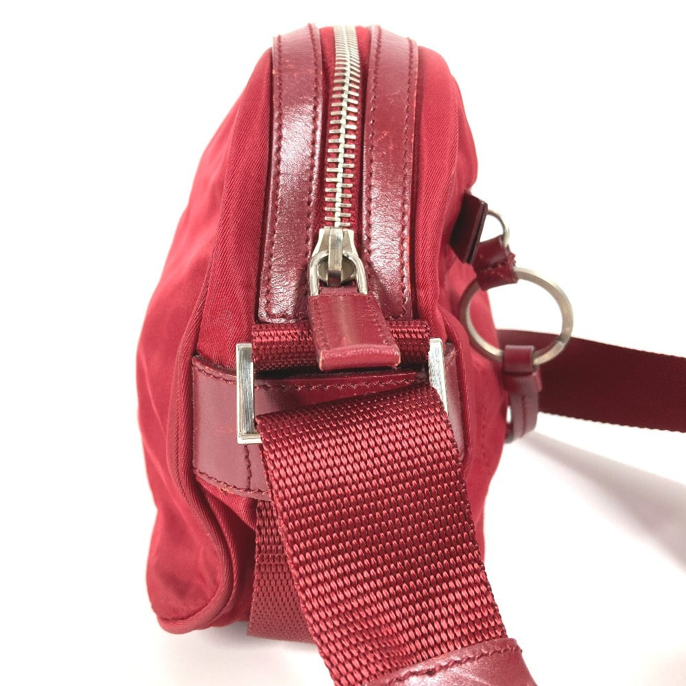 PRADA Shoulder Bag Leather / nylon Red Triangle logo plate