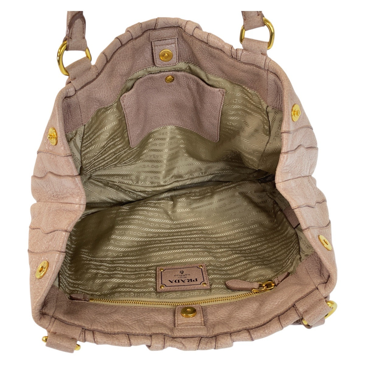 PRADA Shoulder Bag leather Pink Beige Gold Metal Shoulder Bag handbag Women Used Authentic