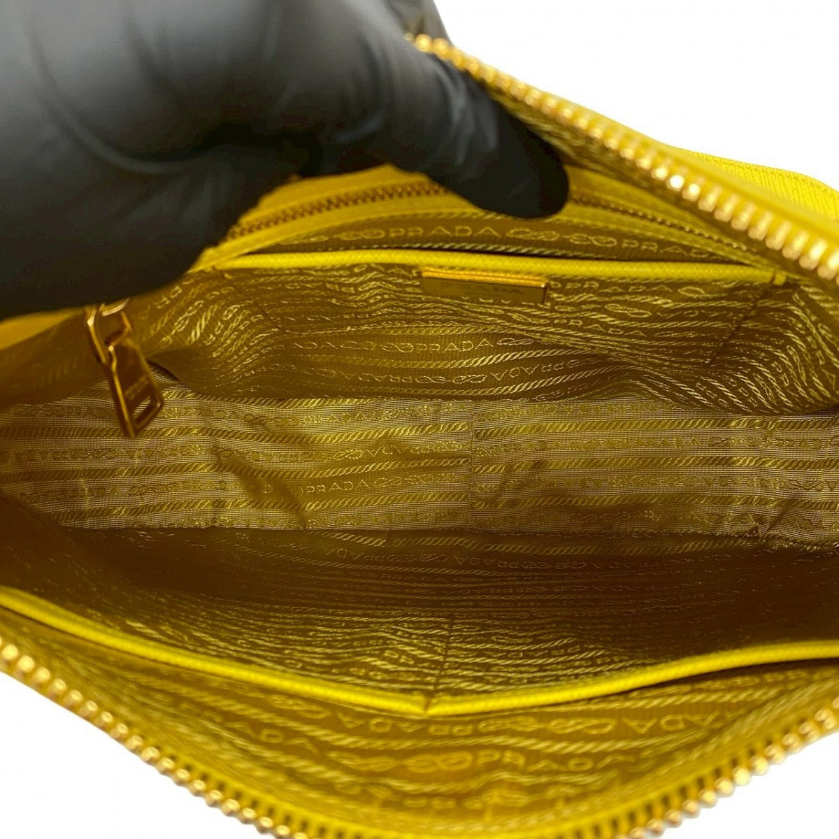 PRADA Shoulder Bag leather yellow Triangular logo Women Used Authentic