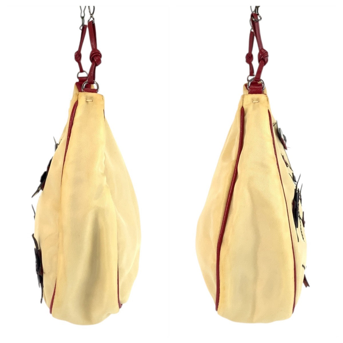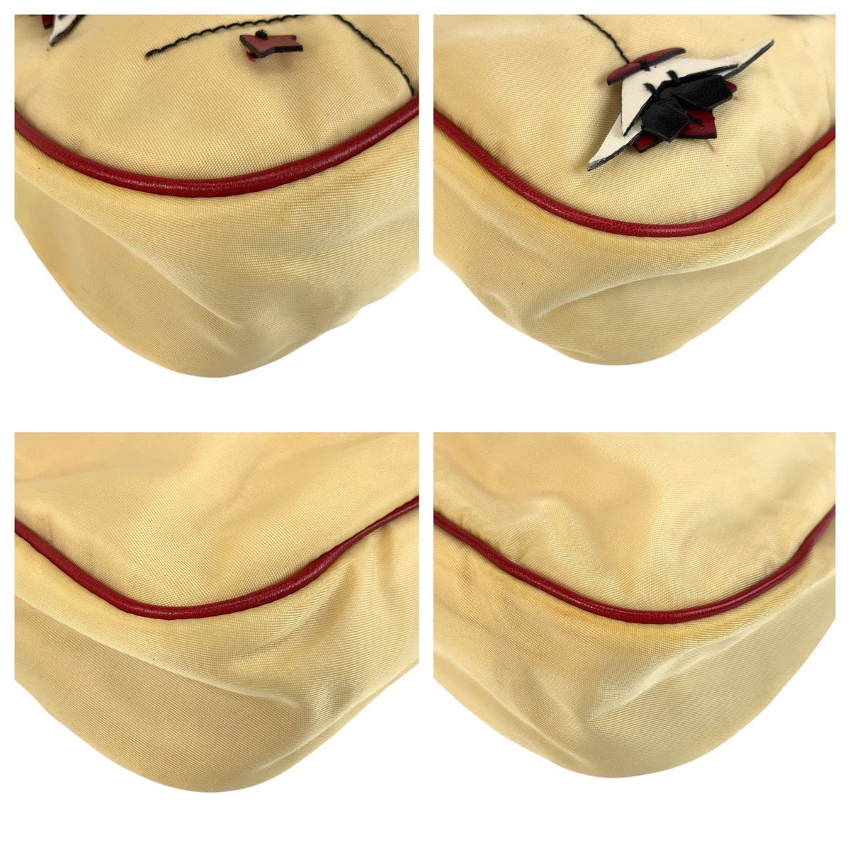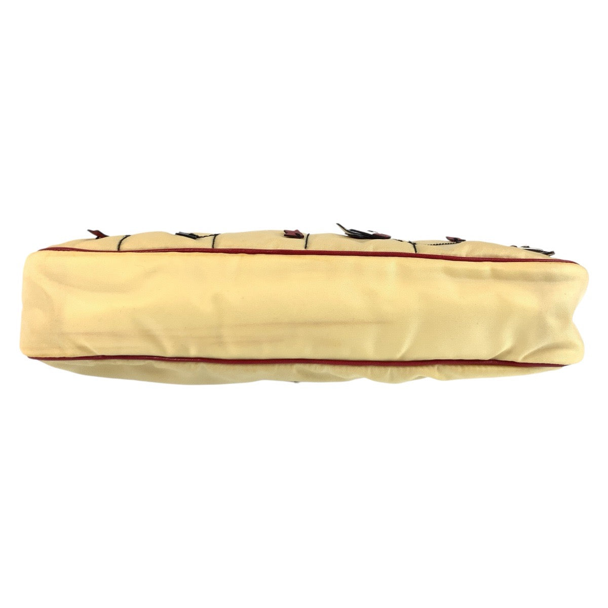 PRADA Shoulder Bag Nylon, Leather Beige Red SilverMetal Shoulder Bag accessory pouch Triangle With logo Women Used Authentic