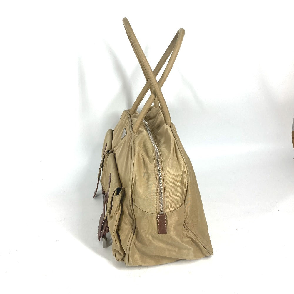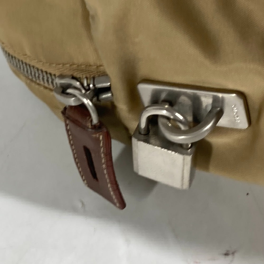 PRADA Shoulder Bag Nylon beige Triangle logo plate Women Used Authentic