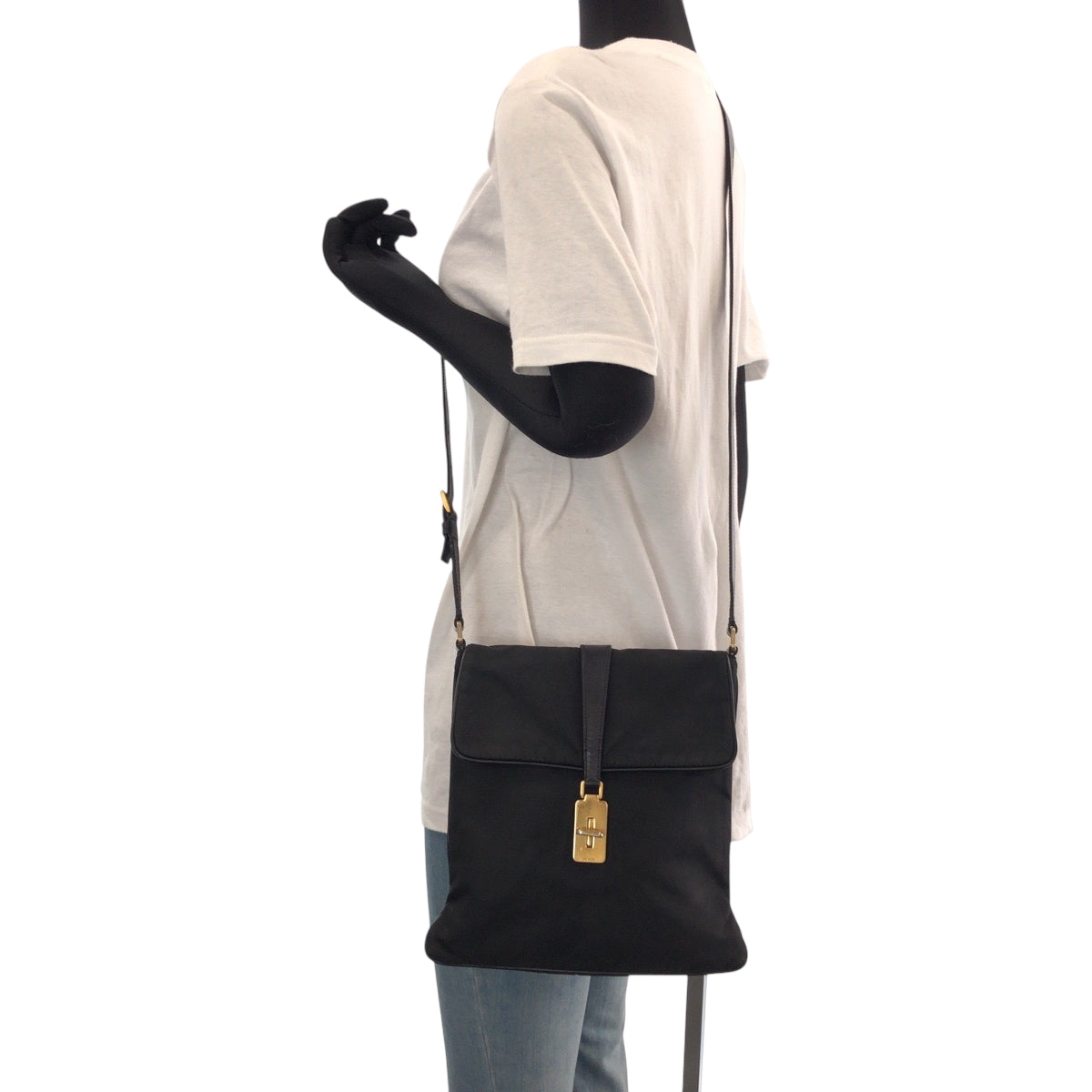 PRADA Shoulder Bag Nylon Black GoldMetal Shoulder Bag pochette Test Triangle With logo Women Used Authentic