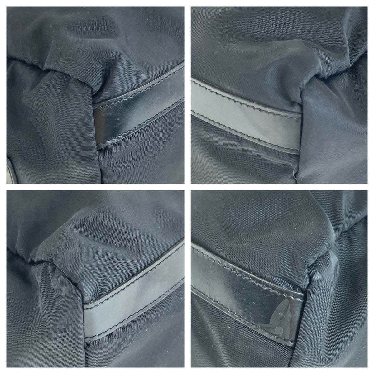 PRADA Shoulder Bag Nylon Black Silver Metal Shoulder Bag Handbag Mini Boston Duffel bag Test Logo embossed Women Used Authentic