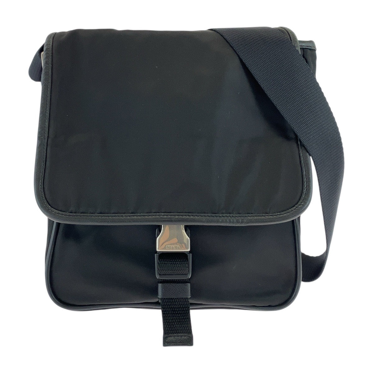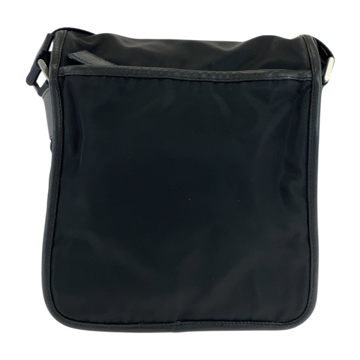 PRADA Shoulder Bag Nylon, Leather Black Silver Metal Shoulder Bag pochette Test Triangle With logo Women Used Authentic