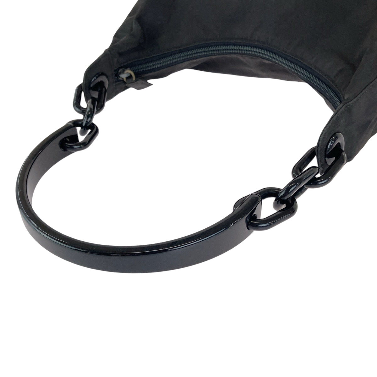 PRADA Shoulder Bag Nylon Black Silver Metal One Shoulder Bag Plastic Handle Test Triangle With logo Women Used Authentic