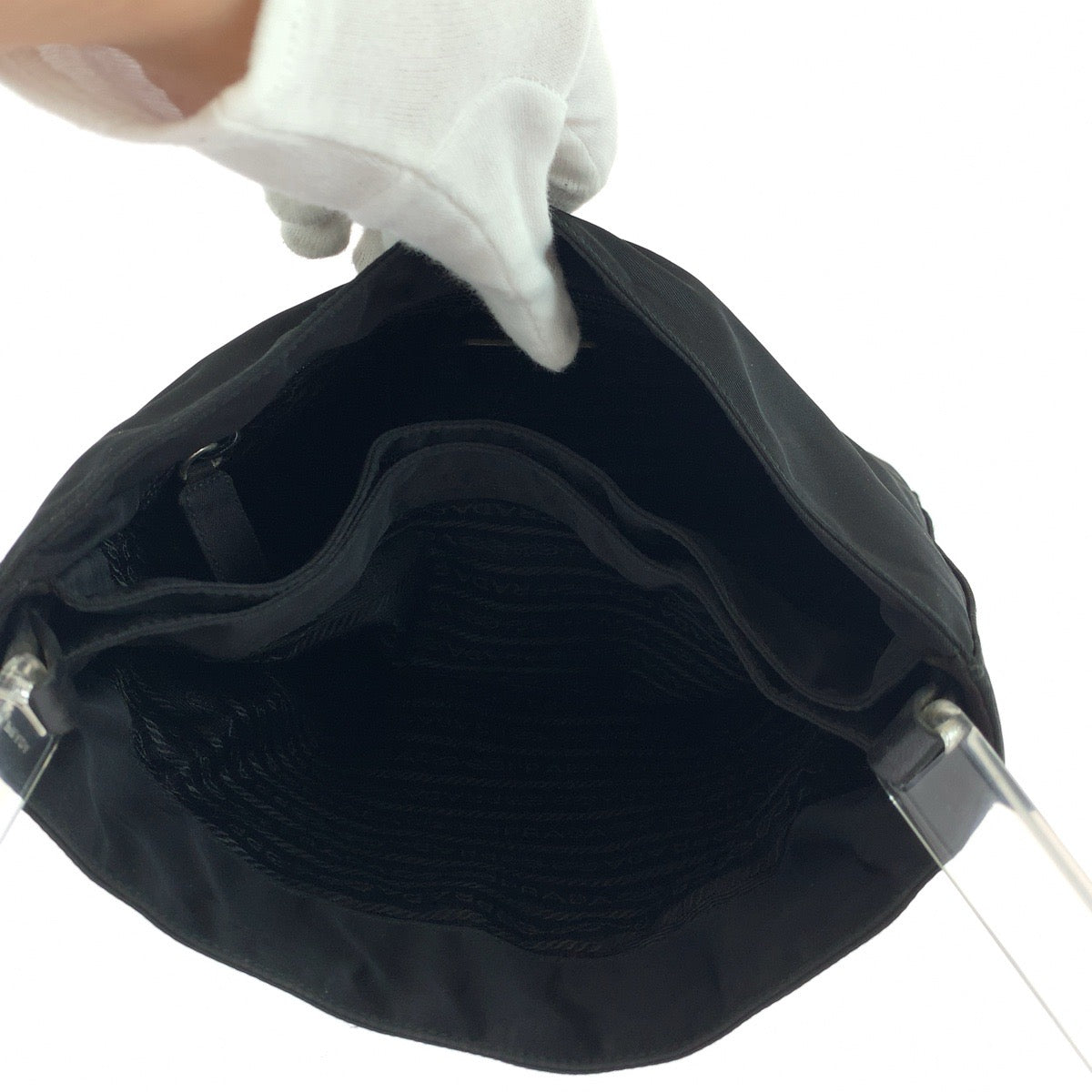 PRADA Shoulder Bag Nylon, Plastic Black Silver Metal Shoulder Bag Shoulder Bag Test Triangle With logo Women Used Authentic
