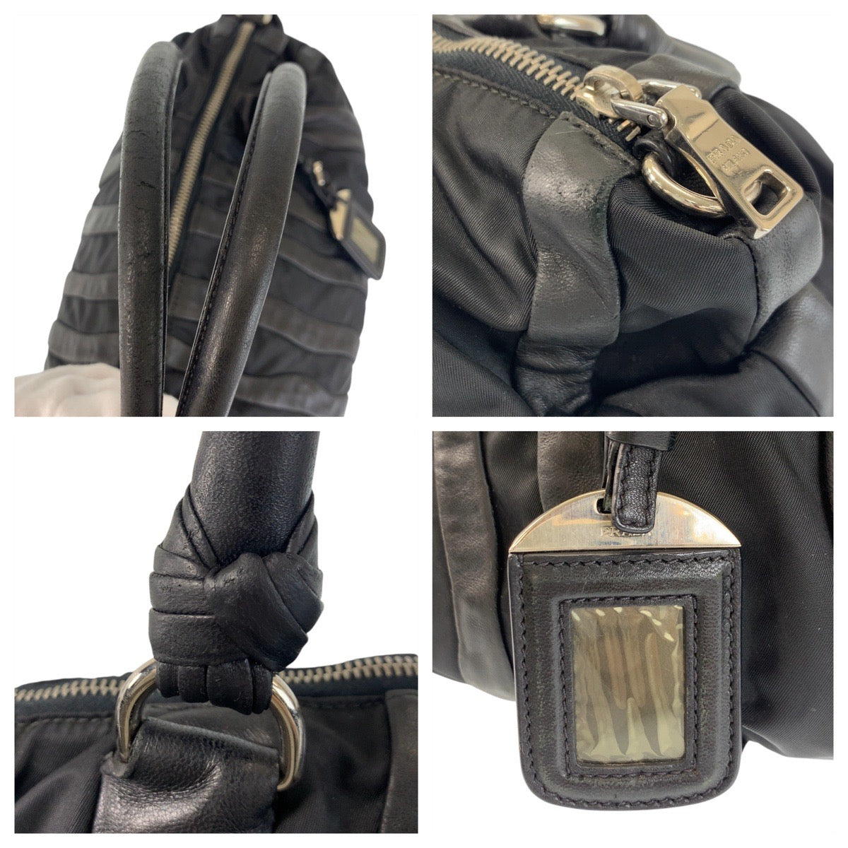 PRADA Shoulder Bag Nylon, Leather Black SilverMetal crimson Women Used Authentic