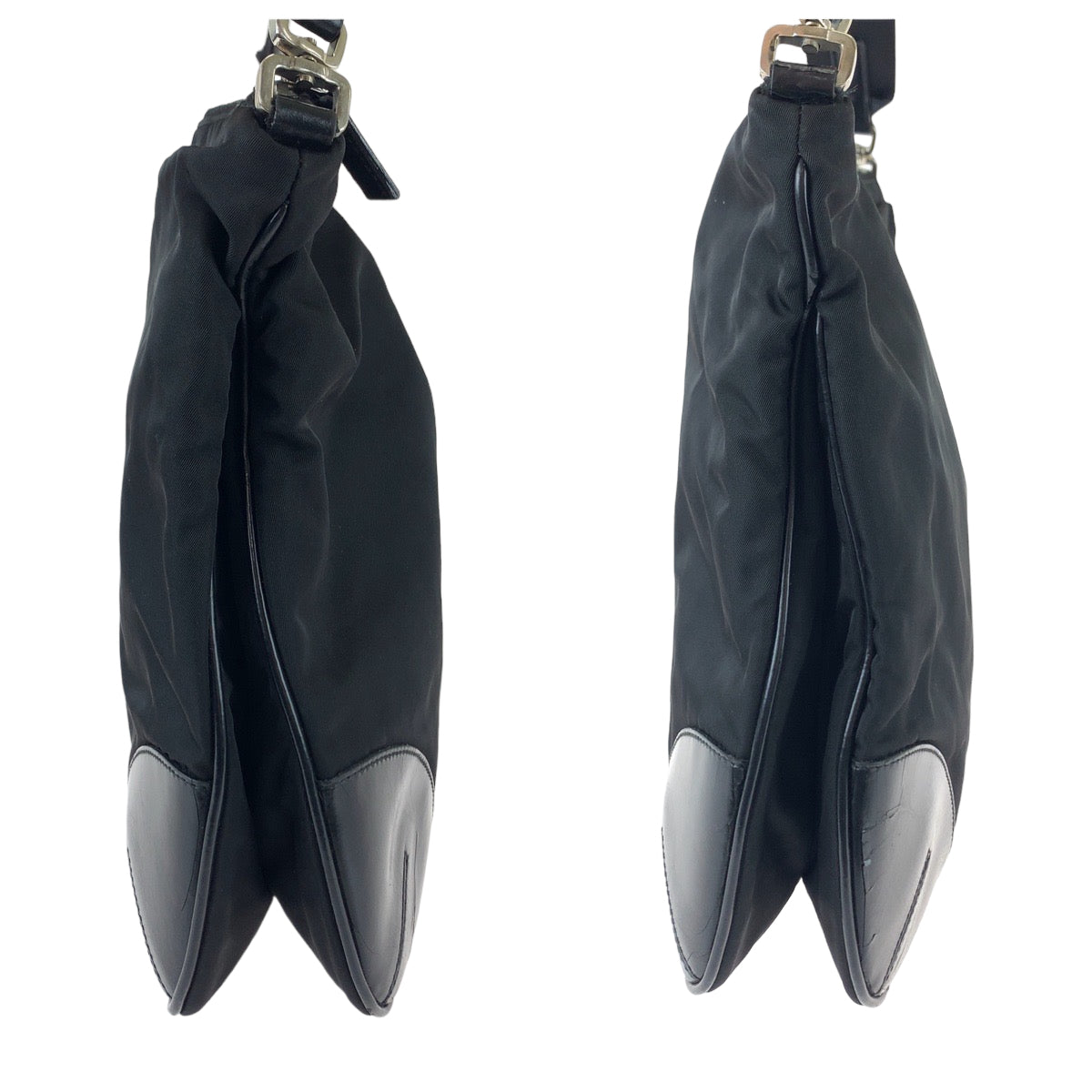 PRADA Shoulder Bag Nylon Black SilverMetal Shoulder Bag Crossbody Messenger Bag Test Triangle With logo mens Used Authentic