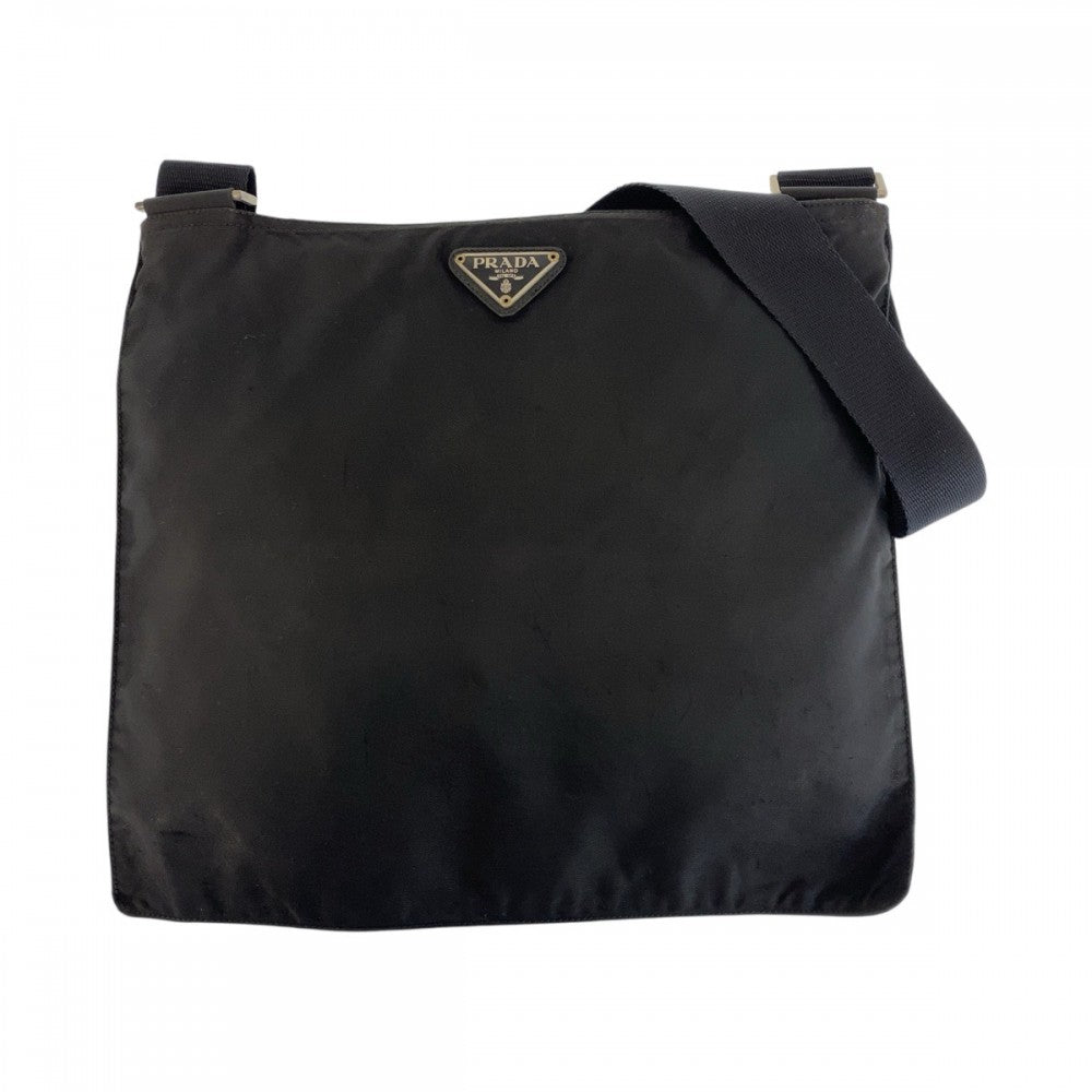 PRADA Shoulder Bag Nylon Black SilverMetal Shoulder Bag Messenger bag Test Triangle With logo Women Used Authentic