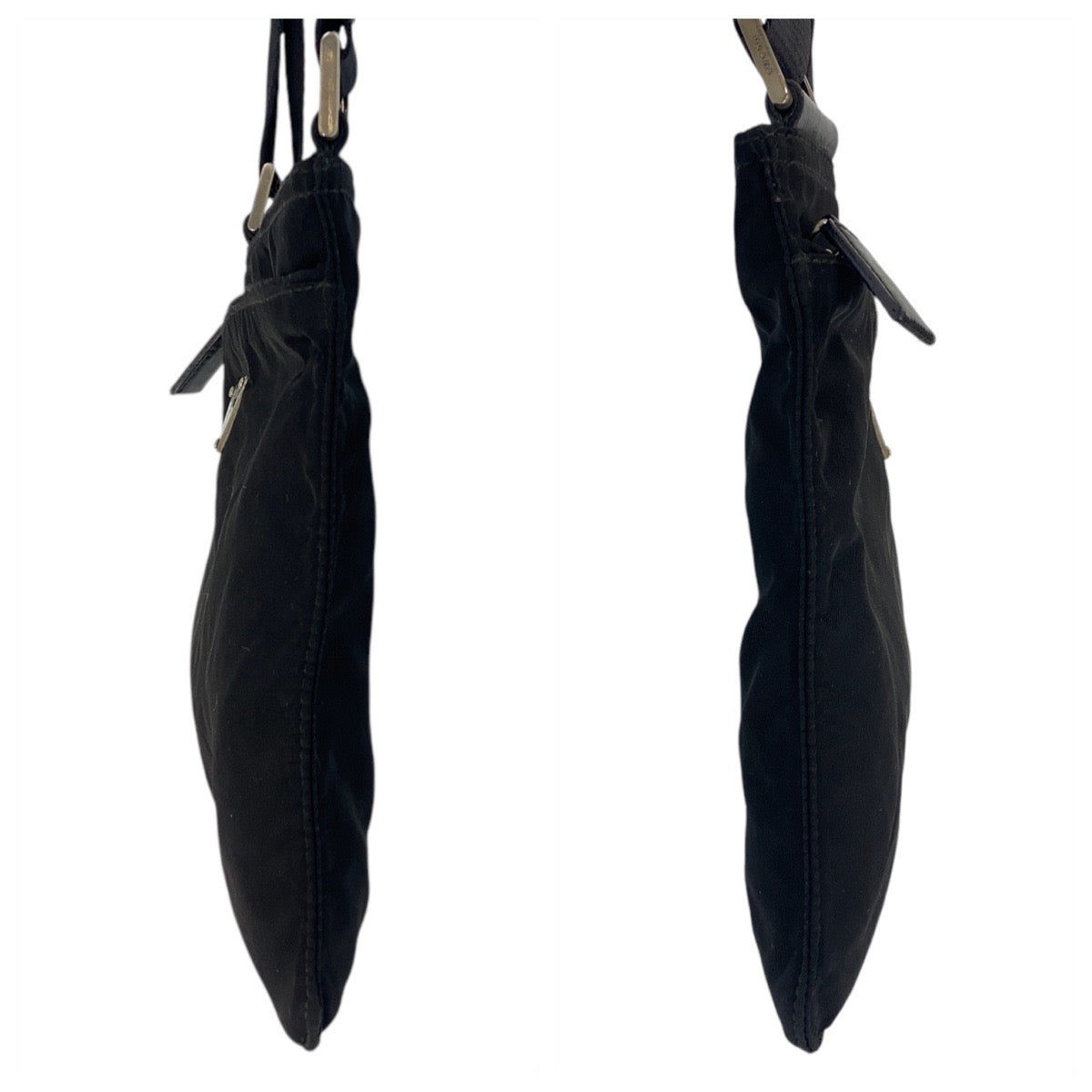 PRADA Shoulder Bag Nylon Black SilverMetal Shoulder Bag pochette Test Triangle With logo Women Used Authentic