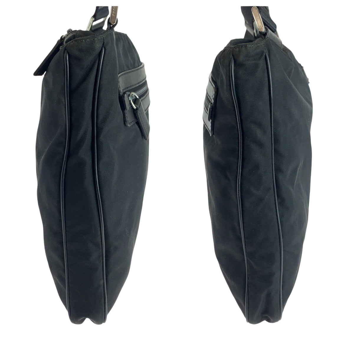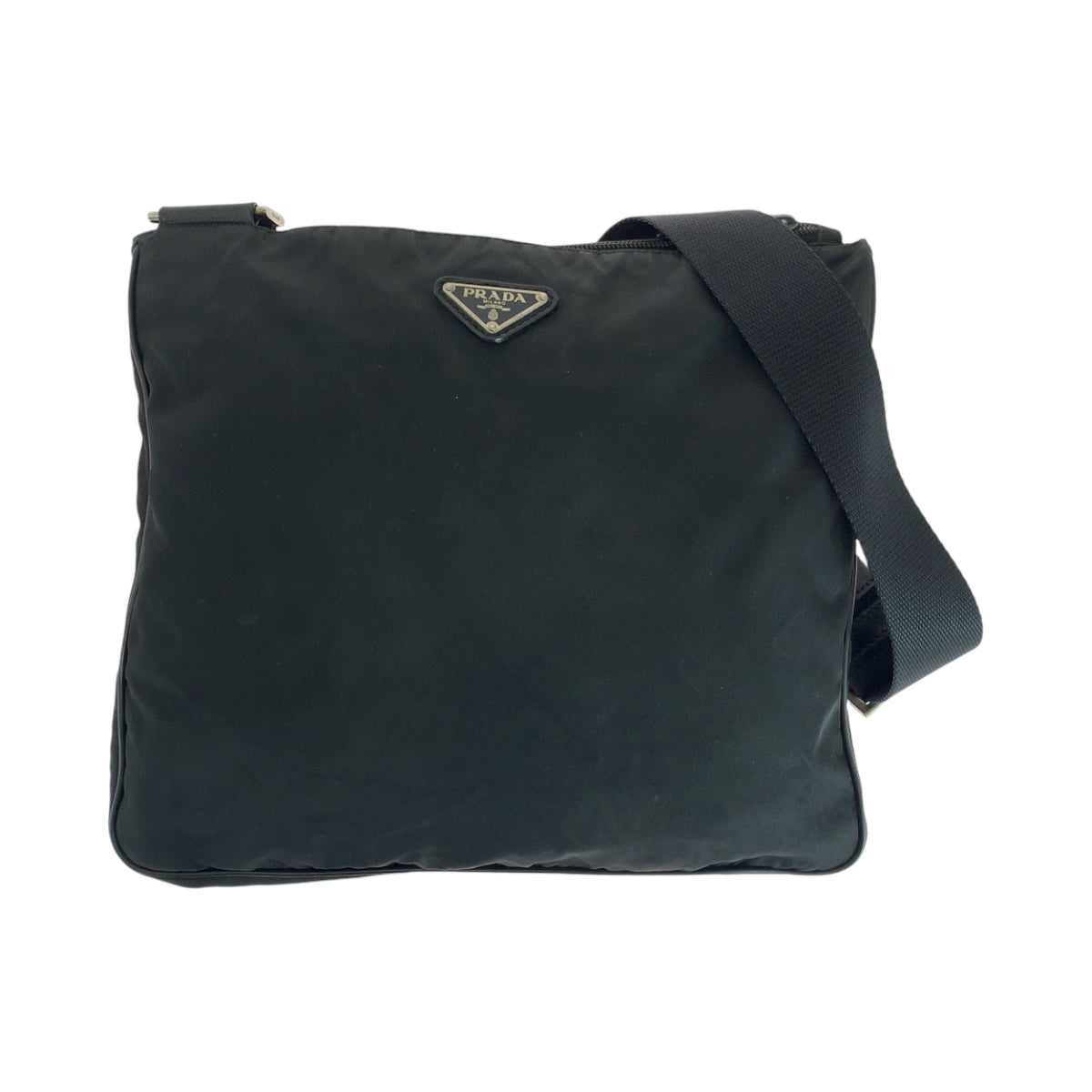 PRADA Shoulder Bag Nylon Black SilverMetal Shoulder Bag pochette Test Triangle With logo Women Used Authentic