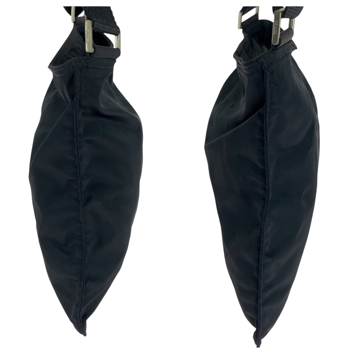 PRADA Shoulder Bag Nylon Black SilverMetal Shoulder Bag Sacoche Test Triangle With logo Women Used Authentic