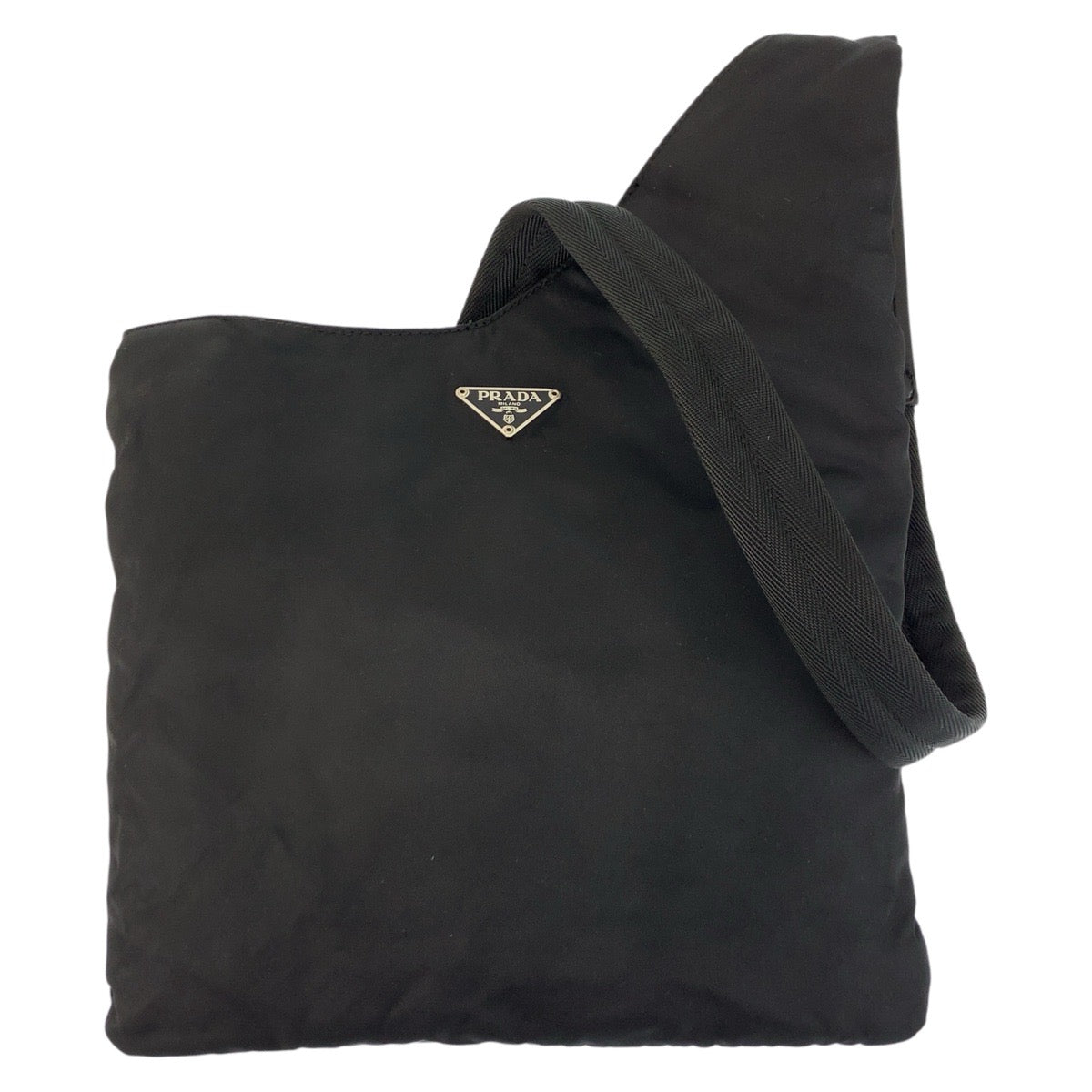 PRADA Shoulder Bag Nylon Black SilverMetal Shoulder Bag Messenger bag Test Triangle With logo Women Used Authentic
