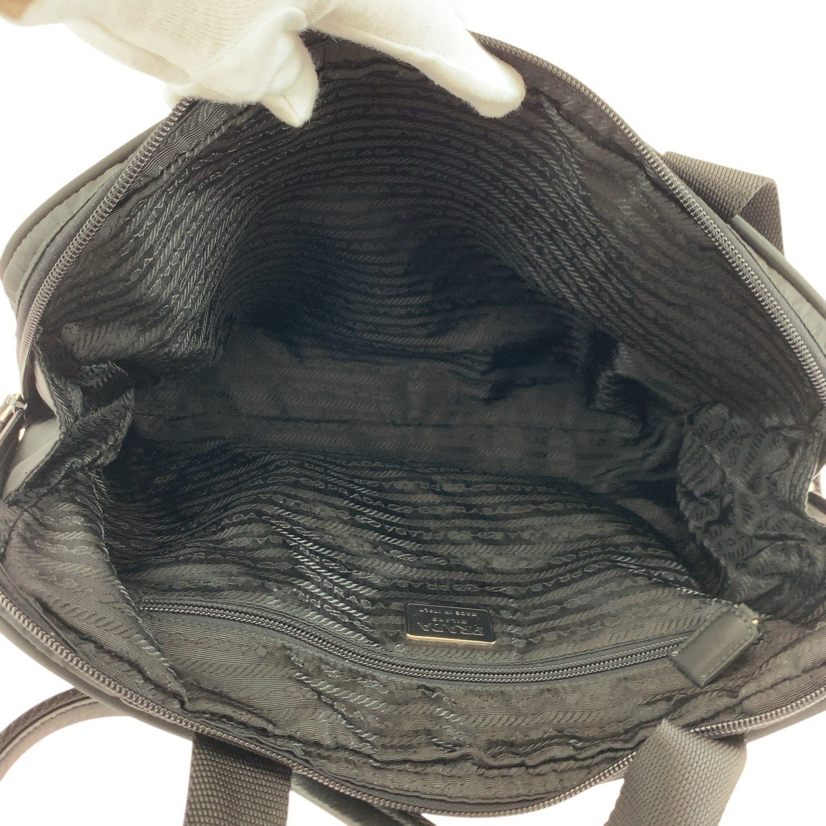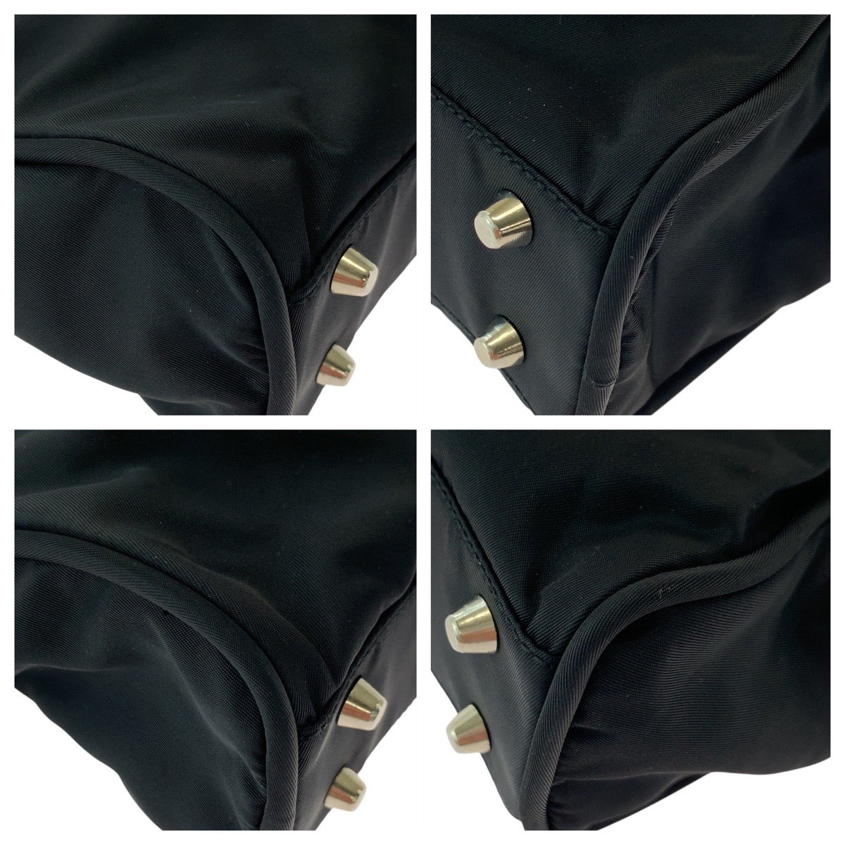 PRADA Shoulder Bag Nylon Black SilverMetal Shoulder Bag Tote Bag Test Triangle With logo Women Used Authentic