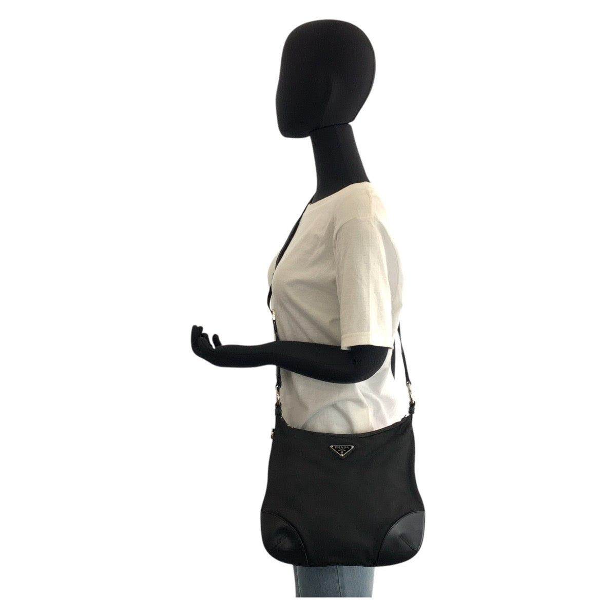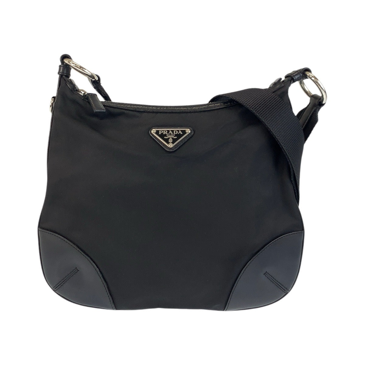 PRADA Shoulder Bag Nylon Black SilverMetal Test Triangle With logo