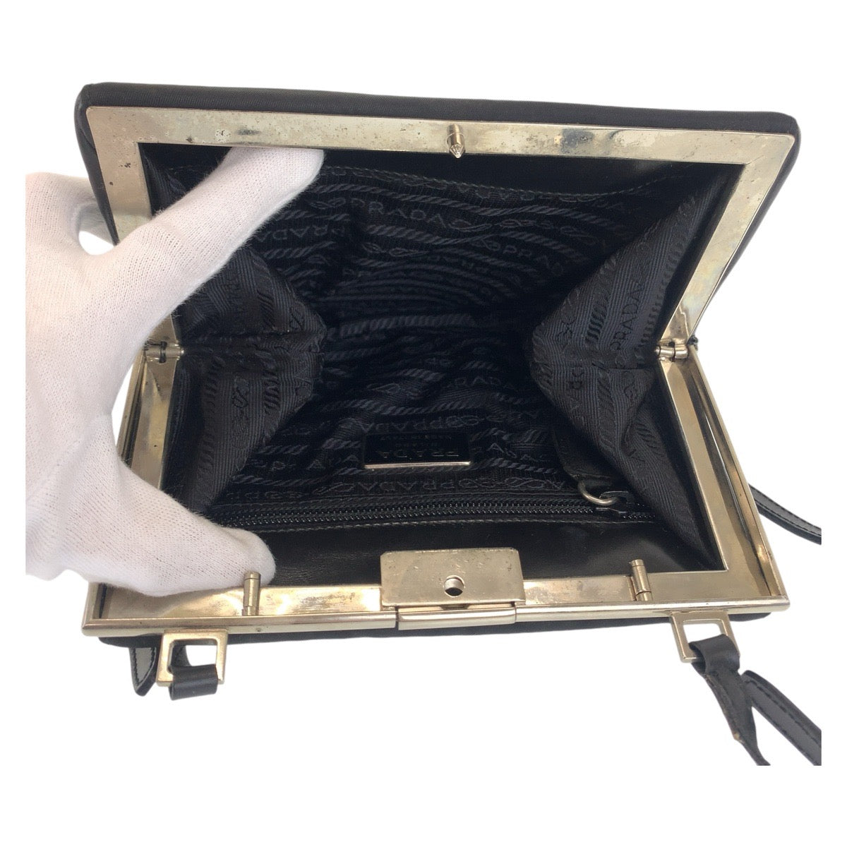 PRADA Shoulder Bag Nylon Black SilverMetal Shoulder Bag pochette Test Triangle With logo Women Used Authentic