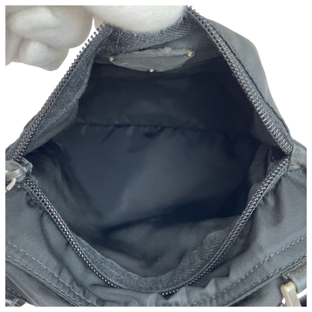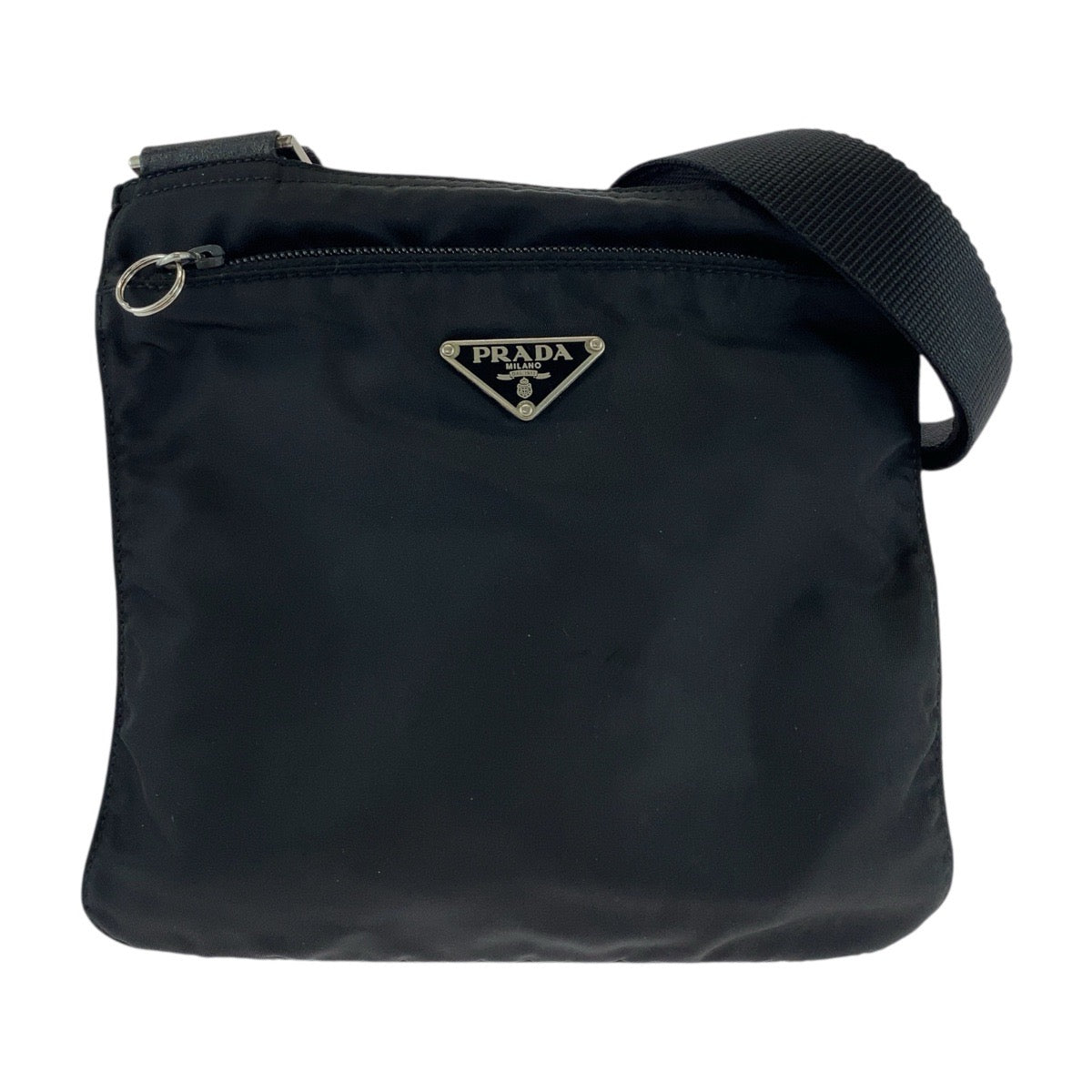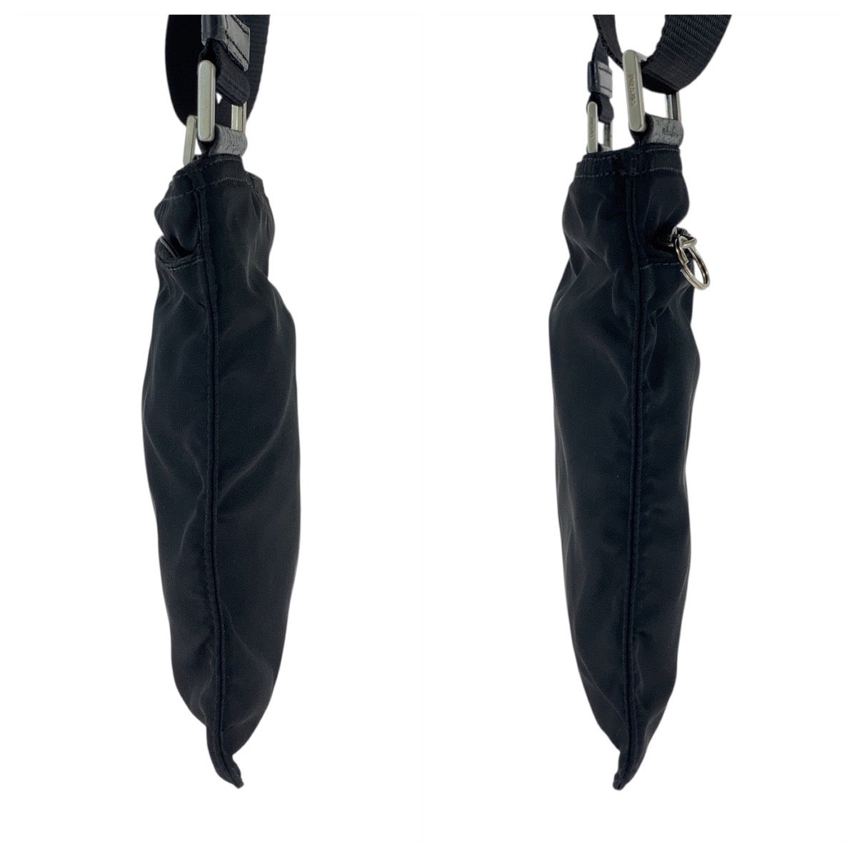 PRADA Shoulder Bag Nylon Black SilverMetal Shoulder Bag pochette Test Triangle With logo Women Used Authentic