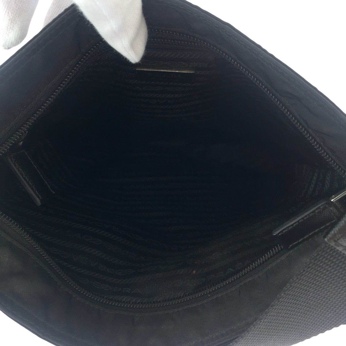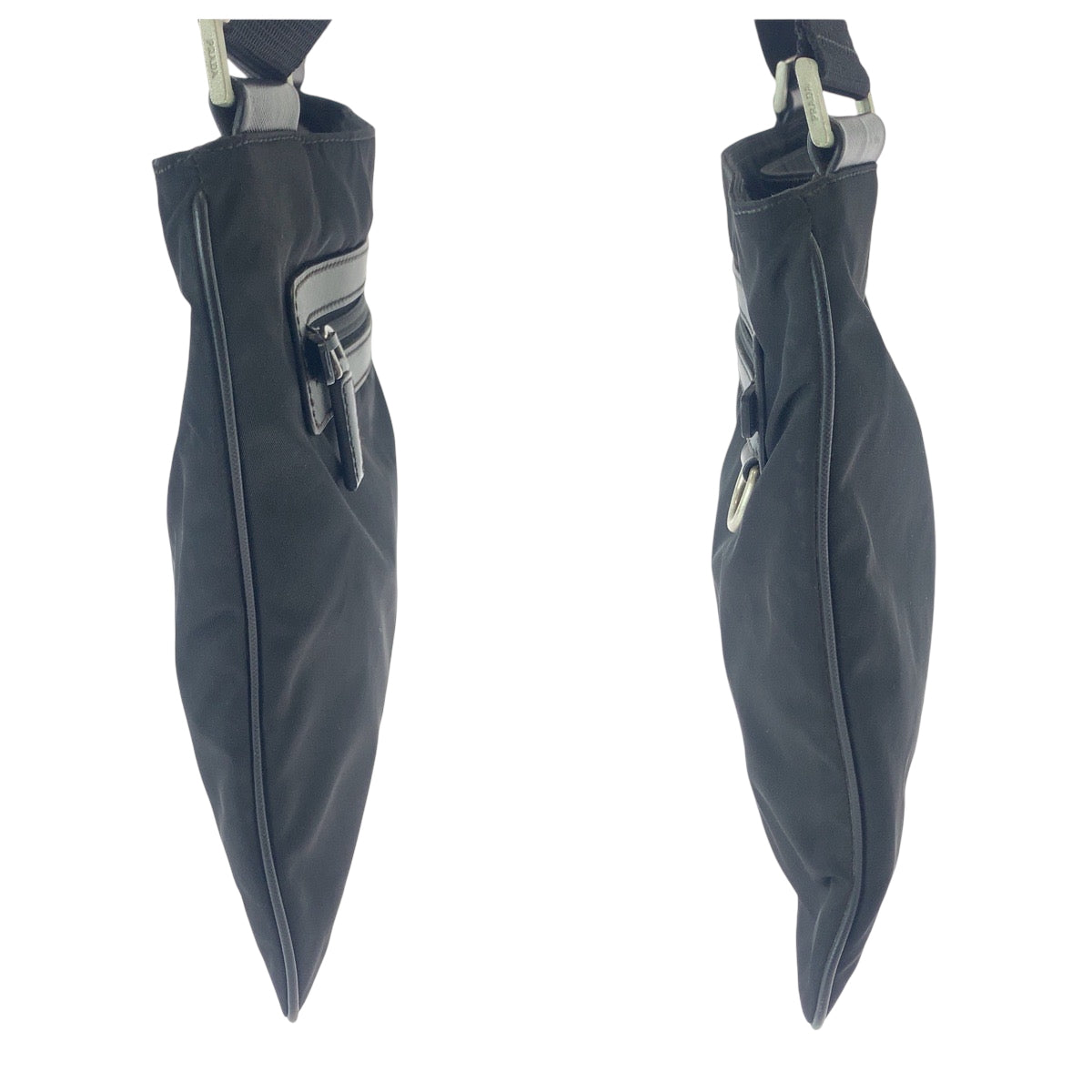 PRADA Shoulder Bag Nylon Black SilverMetal Shoulder Bag pochette Test Triangle With logo mens Used Authentic