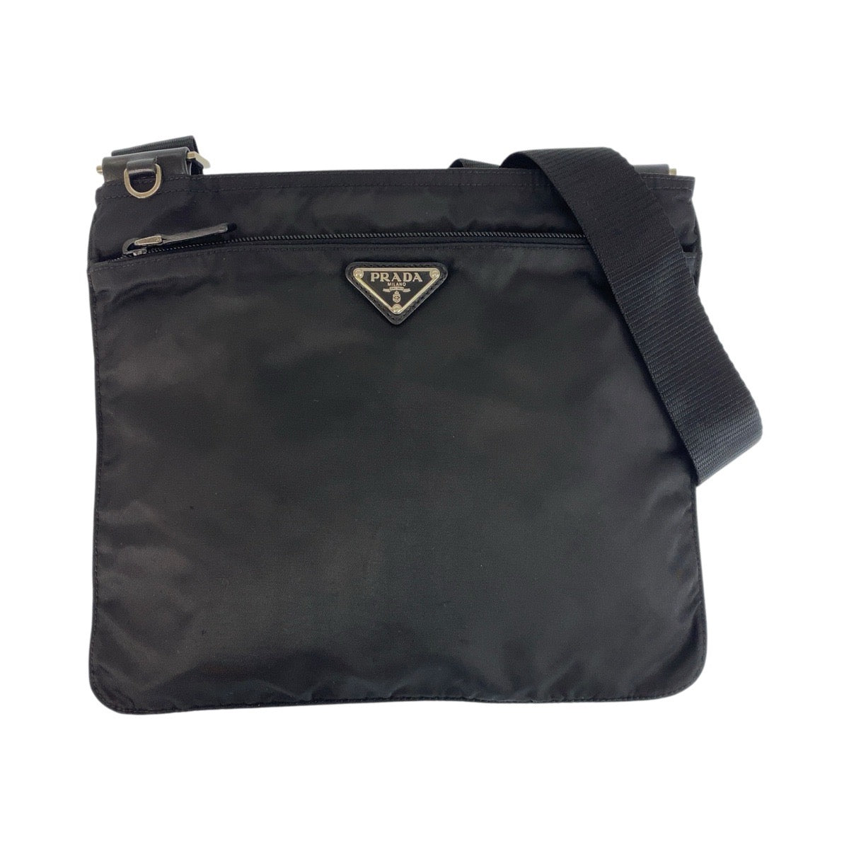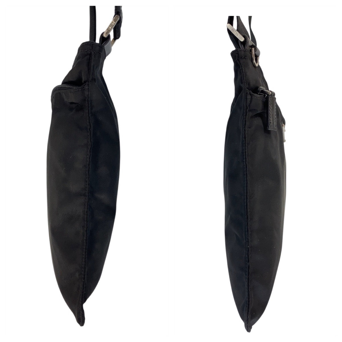 PRADA Shoulder Bag Nylon Black SilverMetal Shoulder Bag Messenger bag Test Triangle With logo Women Used Authentic