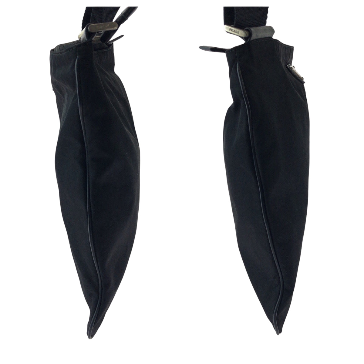 PRADA Shoulder Bag Nylon Black SilverMetal Shoulder Bag pochette Test Triangle With logo Women Used Authentic