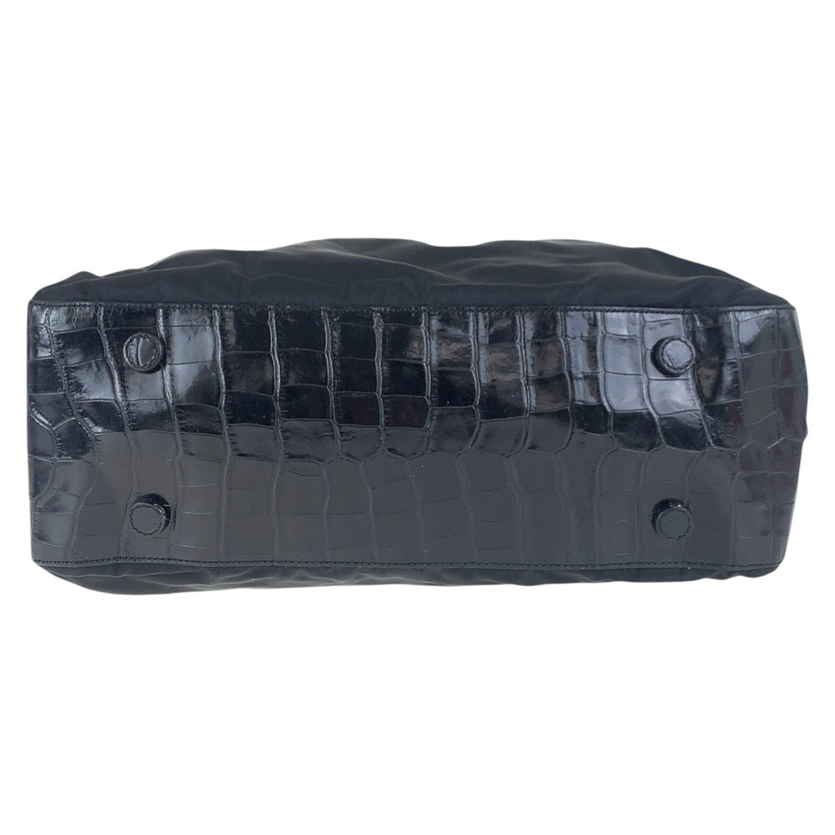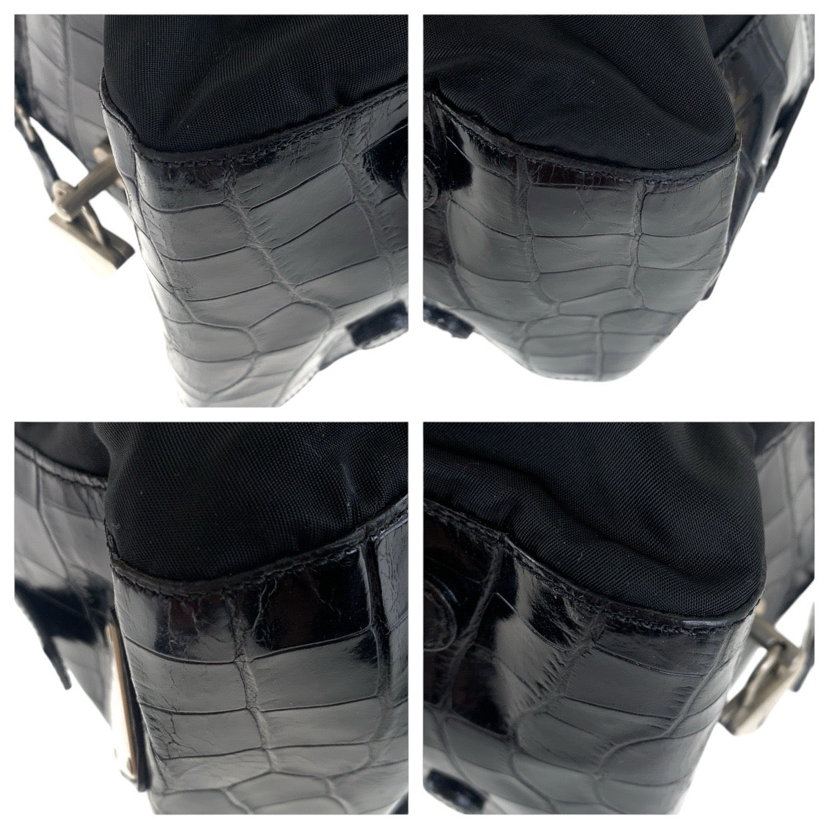 PRADA Shoulder Bag Nylon, Leather Black SilverMetal Shoulder Bag embossed Test Triangle With logo Women Used Authentic