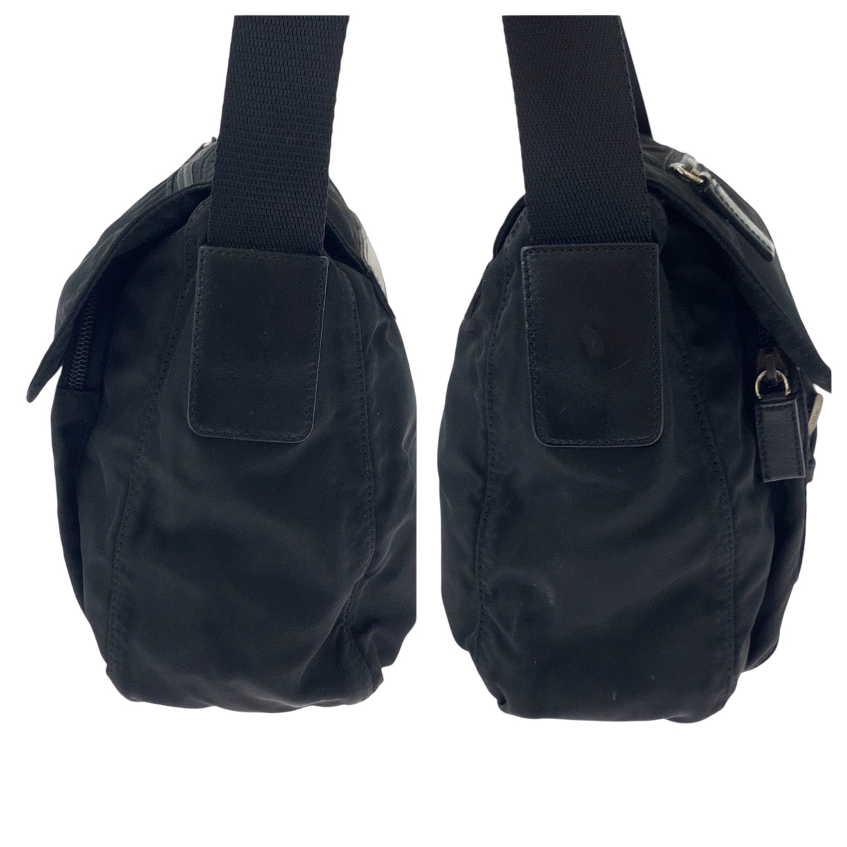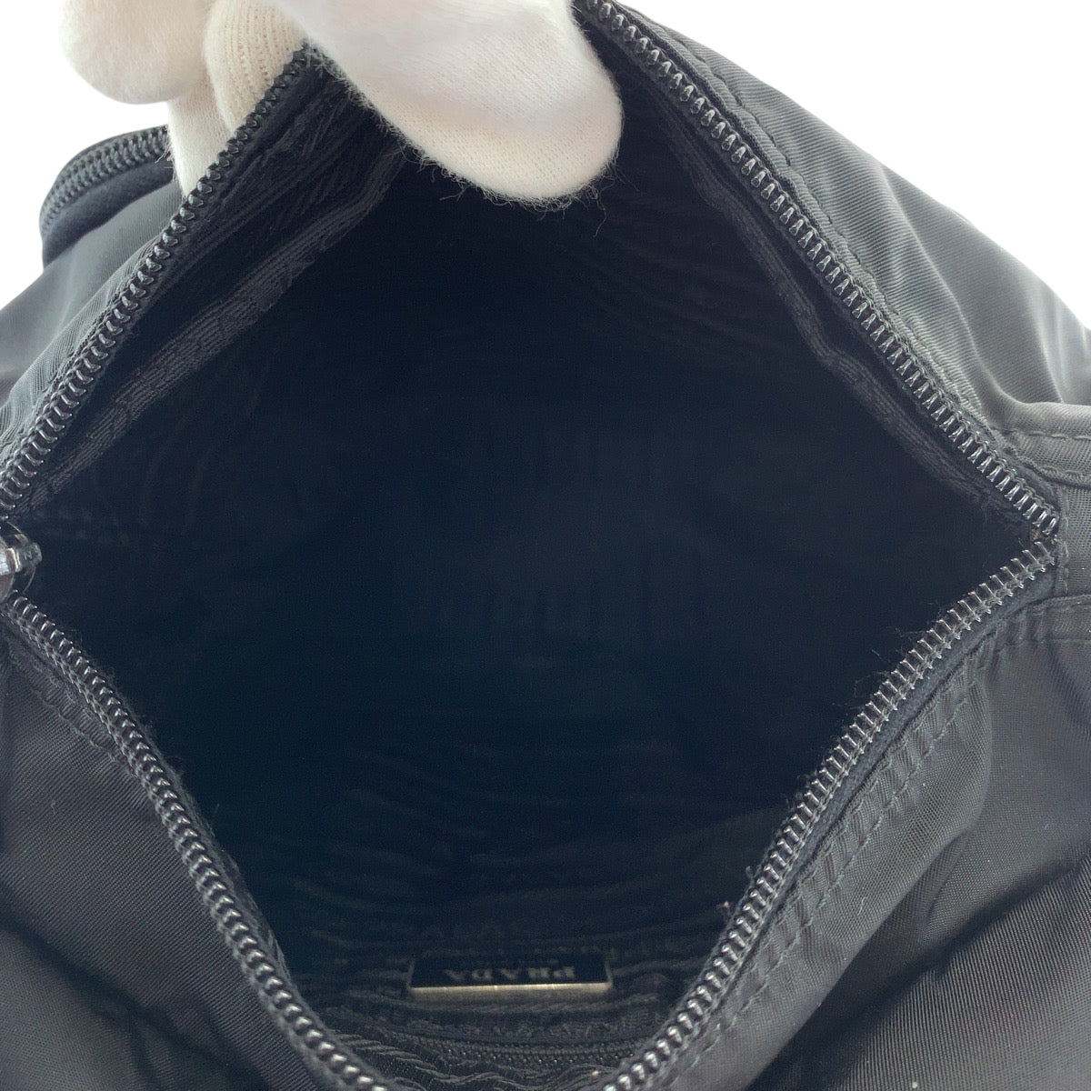 PRADA Shoulder Bag Nylon Black SilverMetal Shoulder Bag pochette Test Triangle With logo Women Used Authentic