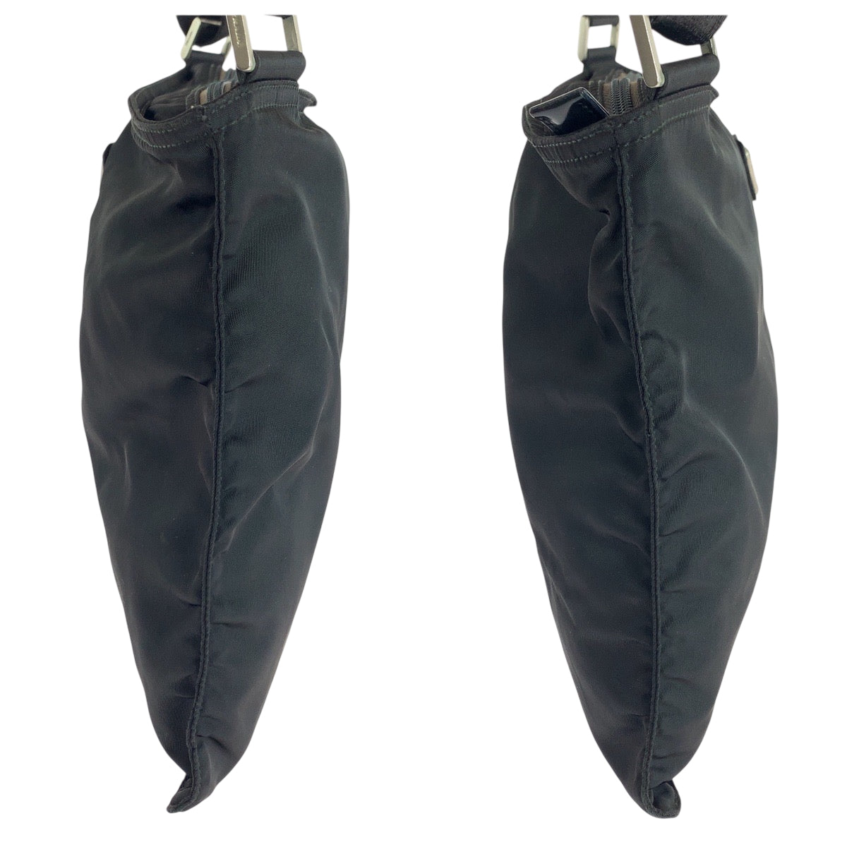 PRADA Shoulder Bag Nylon Black SilverMetal Shoulder Bag Sacoche Test Triangle With logo Women Used Authentic